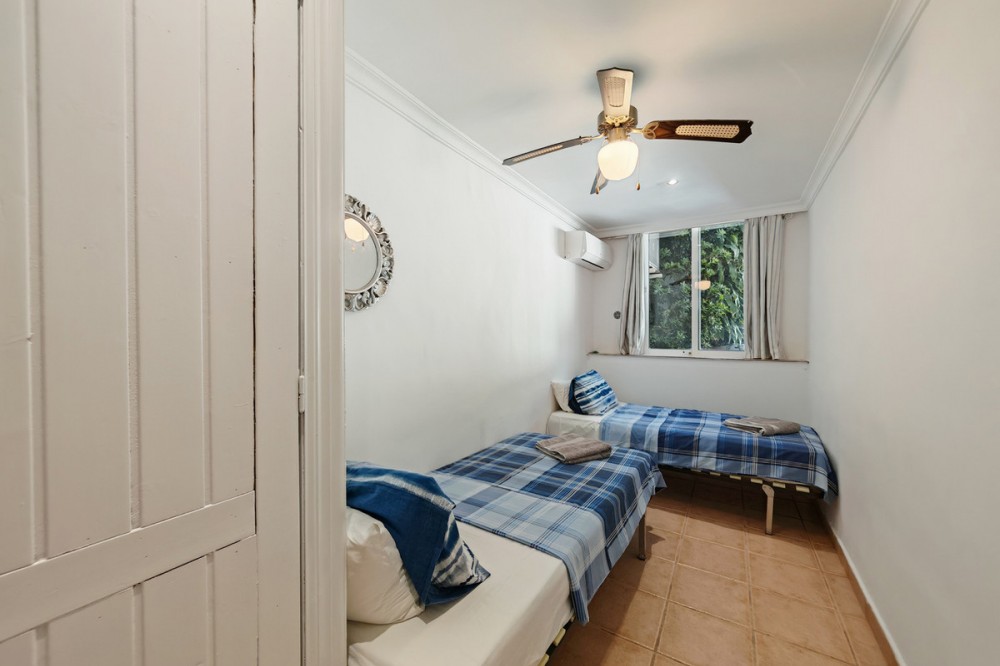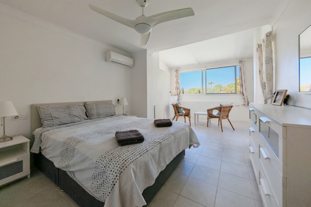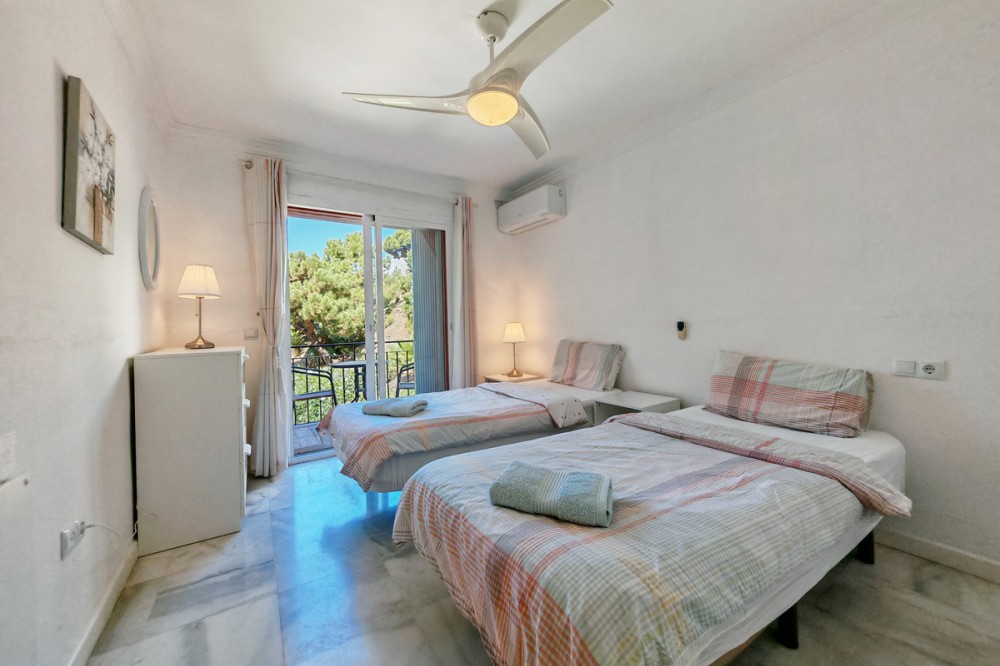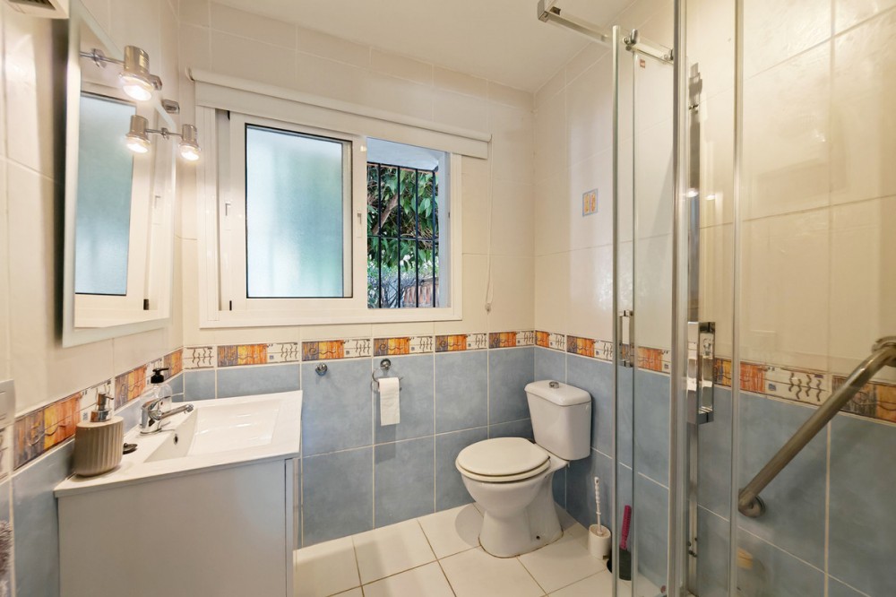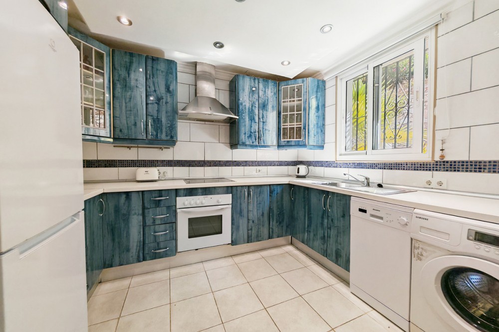- Town House for sale in , Mijas Costa with 5 bedrooms, 4 bathrooms and with orientation south/west, with private swimming pool, private garage (2 parking spaces) and private garden. Regarding property dimensions, it has 210 m² built and 140 m² terrace. Has the following facilities transport near, air conditioning, fully furnished, fully fitted kitchen, utility room, fireplace, basement, guest room, storage room, solarium, double glazing, barbecue, guest toilet, private terrace, kitchen equipped, living room, study room, separate apartment, sea view, bars, laundry room, internet - wi-fi, covered terrace, fitted wardrobes, garden view, pool view, panoramic view, close to children playground, close to sea / beach, close to golf, uncovered terrace, glass doors, balcony, excellent condition, ceiling cooling system, close to shops, close to town, close to schools, guest apartment, office room and pets allowed.