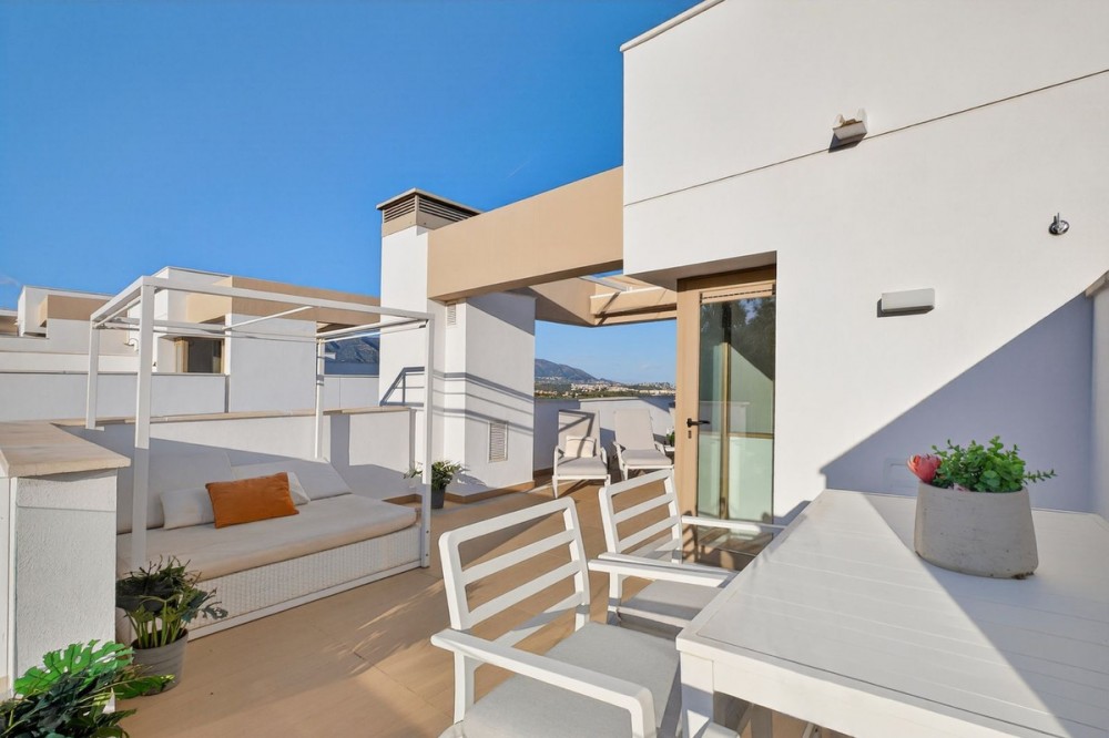 - This stylish townhouse offers a great mix of space, natural light and modern design, making it a really comfortable home whether you’re living here full-time or using it as a holiday place. With marble floors throughout and a warm, contemporary feel, it’s both practical and inviting. The main living area is bright and open, with a lounge and dining space that flows straight out onto a private terrace and through large sliding doors. It’s a great space for relaxing, having friends over or just enjoying a meal outside. The kitchen is fully fitted and connects nicely with the living space, so everything feels open and easy to use. The house is set over three levels and has three good-sized bedrooms, all with built-in wardrobes. The master bedroom has its own en-suite, and there’s also a family bathroom. There’s a private garage with space for up to three cars, which is a big plus for both parking and storage. The property also benefits from a fully upgraded basement, with pre-installation already in place for a bathroom (including plumbing and drainage), along with electrical points, lighting and a ventilation system. This gives you a great opportunity to easily create extra living space, whether that’s a guest apartment, gym or entertainment area. It also comes with a tourist licence already in place, so you can rent it out short term if you want. Another nice detail is that you only have neighbours on one side, which gives you a bit more privacy. The property is located in La Cala Golf Resort, one of the most popular areas on the Costa del Sol. You’ve got access to three golf courses, a racquet club (tennis, padel and squash), gym, spa and the hotel. The community itself has well-kept gardens, two swimming pools and a separate kids’ pool. Even though it feels peaceful and surrounded by nature, you’re only about 7 minutes from the beach, restaurants, shops and schools in La Cala de Mijas. Fuengirola is around 10 minutes away, Marbella 20 minutes, and Málaga Airport about 30 minutes, with easy access to the main road. All in all, it’s a really solid option if you’re looking for a modern home in a quiet location, with rental potential and everything you need close by. Contact us today to secure your viewing.