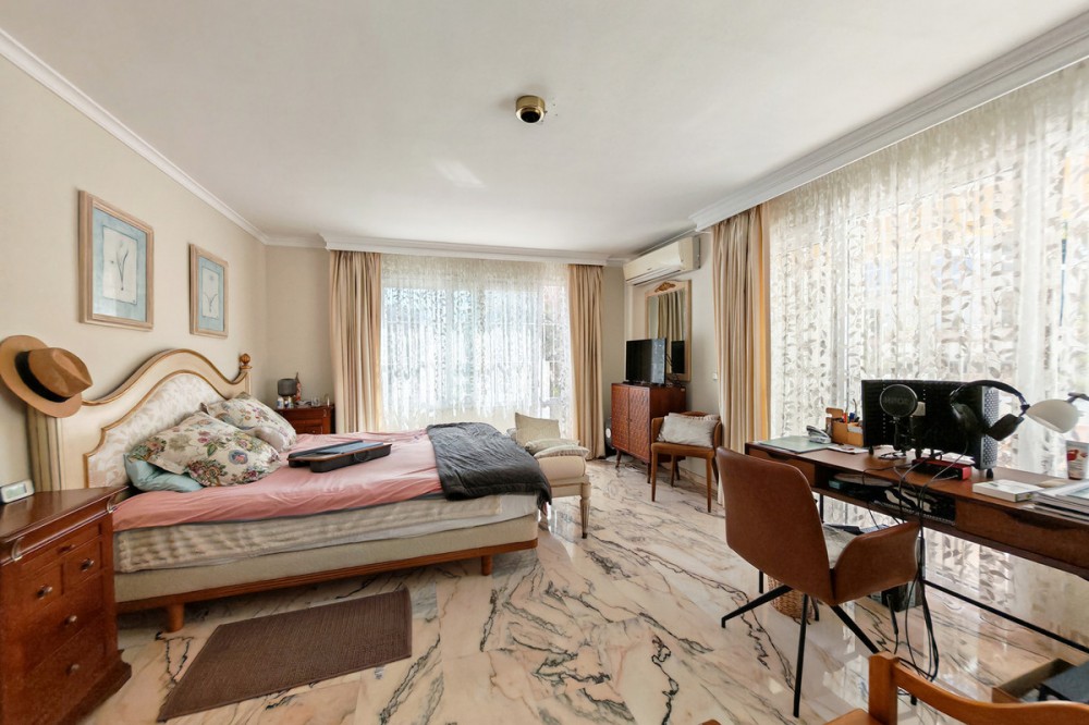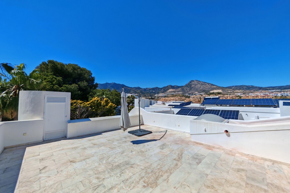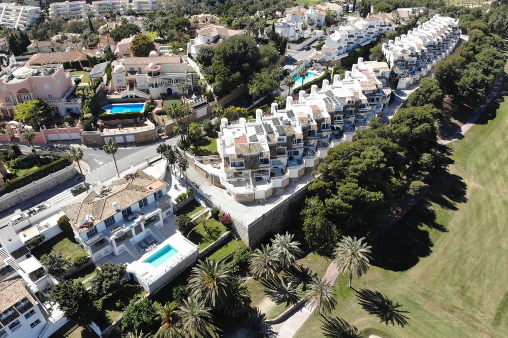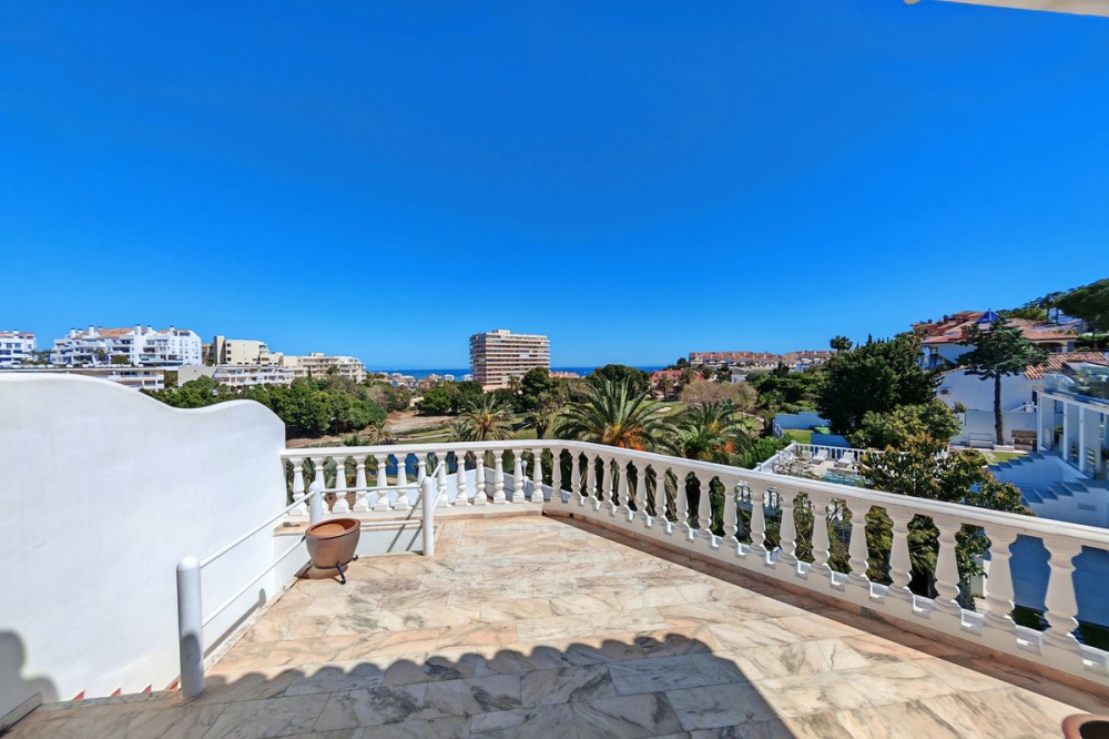 - Semi Detached Villa for sale in , Benalmadena with 5 bedrooms, 3 bathrooms, 3 en suite bathrooms, 1 toilet and with orientation south/east, with communal swimming pool, private garage (2 parking spaces) and private garden. Regarding property dimensions, it has 241 m² built, 800 m² plot and 100 m² terrace. Has the following facilities front line golf, amenities near, transport near, air conditioning, central heating, fully fitted kitchen, marble floors, basement, guest room, storage room, solarium, double glazing, dining room, guest toilet, private terrace, kitchen equipped, living room, study room, sea view, golf view, automatic irrigation system, laundry room, gated community, street view, doorman, close to sea / beach, close to golf, uncovered terrace, separate dining room, balcony, optional furniture, good condition, close to shops, close to town, close to schools, guest apartment, inside golf resort, office room, roof terrace and close to restaurants.
