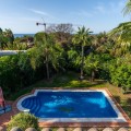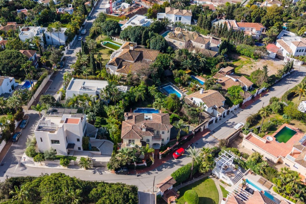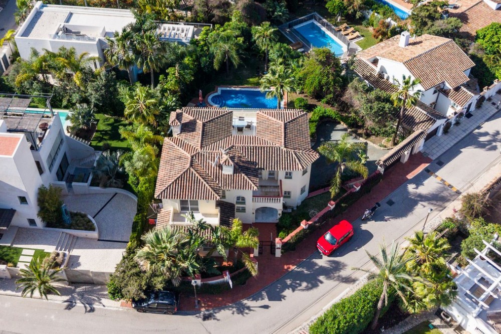 - This elegant detached villa is located in the exclusive Marbesa area, situated in East Marbella. It is an ideal property for those seeking a tranquil residential environment by the sea, combining privacy with proximity to both the beach and the main services and amenities of the area. Easy walking distance to 1 supermarket & 5 restaurants. The home boasts a generous built area of 405 m² and sits on a spacious plot of 750 m². The layout of the villa includes 5 bedrooms and 5 bathrooms across three levels and a total built area of approx. 292 m². The main living room features a fireplace and connects both to the dining area, office and a fully equipped kitchen, as well as an additional practical pantry. Outside, the villa offers a privileged setting thanks to its well-maintained mature gardens, private pool, and spacious terrace, ideal for outdoor living. Additional highlights include a barbecue area and private gardens. Air conditioning ensures a perfect environment throughout the year. Internet available at 590 mb download speed, 609 mb upload! cc tv remotely monitored, 5 cameras via web/i phone/ i pad monitored by security company in the area. On the upper floor: 3 spacious bedrooms with bathroom en suite, 2 of which enjoy access to a private balcony with sea views, while the third bedroom and bathroom provides extra comfort. The lower level includes a self contained guest apartment with kitchen and independent access, and a double garage with plenty of storage space. The location of this villa is unbeatable: just a short distance from the beach and with all services at hand, such as supermarkets and restaurants, as well as quick access to the centre of Marbella. The property is perfect both as a permanent residence and as an investment for renovation, taking advantage of its magnificent potential in one of the most sought-after areas of the Costa del Sol.