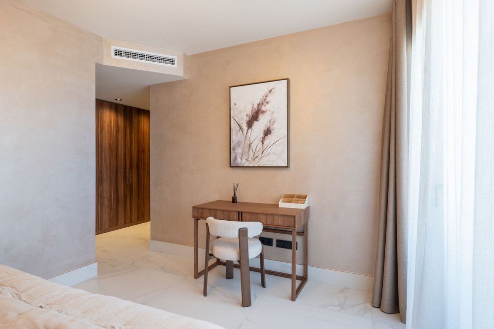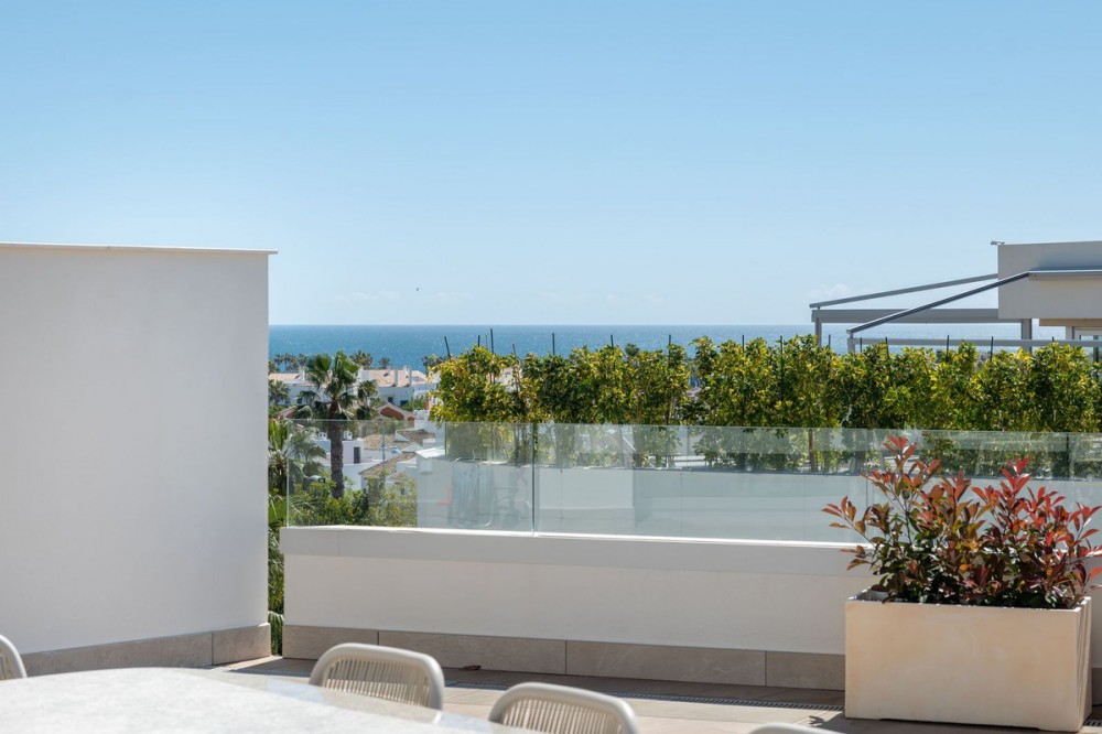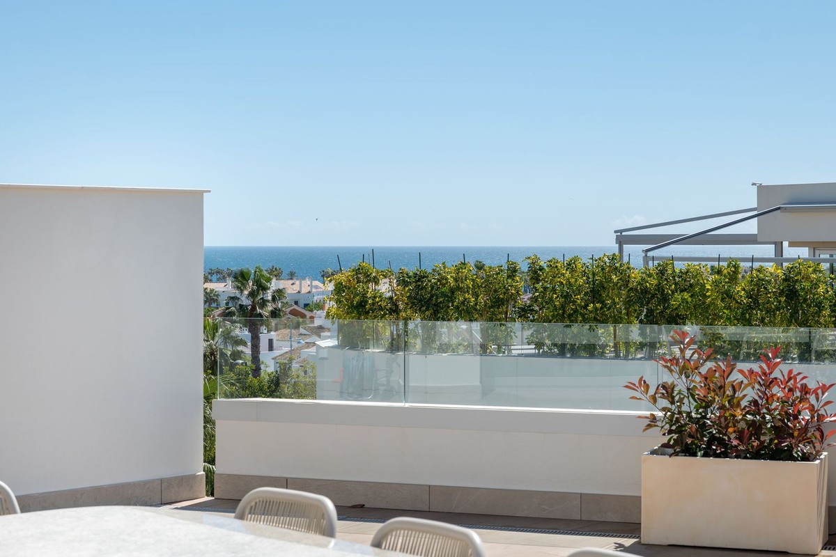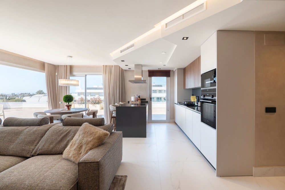 - Brand New Penthouse Steps from the Beach | Urbanización Mare Located in the exclusive Urbanización Mare - a contemporary boutique development designed for modern Mediterranean living, combining elegant architecture, high-quality materials, and energy-efficient features - just a two-minute walk from San Pedro de Alcántara beach and within easy reach of Marbella, Puerto Banús, and all amenities. This completely new penthouse has been redesigned from its original four-bedroom layout into a spacious 3-bedroom residence, significantly enhancing both comfort and sense of space. It offers approximately 112 m² of interior living area alongside an exceptional wraparound terrace of over 200 m², creating a seamless indoor-outdoor lifestyle. The bright, open-plan living and dining area connects naturally to a fully equipped modern kitchen, with floor-to-ceiling windows flooding the space with natural light and opening directly onto the expansive terrace - ideal for relaxing or entertaining. All three bedrooms are generously proportioned, with the master bedroom enjoying direct terrace access. High-quality finishes, energy-efficient air conditioning, and excellent acoustic insulation ensure year-round comfort. The impressive terrace offers multiple outdoor living zones - lounge areas, dining spaces, and the option to add a private jacuzzi - all designed to make the most of the Costa del Sol climate. A private parking space and storage room are included in the price.