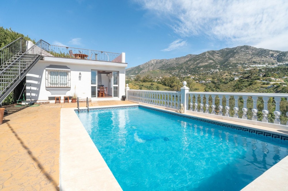 - This exclusive detached villa represents an excellent opportunity for those who value absolute privacy and space without sacrificing proximity to the coast. Set on a generous private plot of 1,605 sqm , the property stands out for its layout across three independent structures: a main residence, a self-contained guest house, and a large garage. Its orientation and elevated position guarantee a constant flow of natural light and unobstructed views that beautifully combine the mountain landscape with the Mediterranean Sea. The property features a total built area of 313 sqm, intelligently distributed to maximize comfort and functionality. The 193 sqm main house comprises three bedrooms (including a master suite) , and spacious living areas equipped with a fireplace and air conditioning. The exterior is designed for year-round enjoyment of the Costa del Sol climate, highlighting a private swimming pool and mature garden areas. A key added value is the 35 sqm guest house , perfect for hosting visitors independently or as a rental investment, alongside a 45 sqm enclosed garage with ample capacity for multiple vehicles. Located in the peaceful area of Diseminado El Hornillo in Mijas, the estate offers a tranquil retreat just minutes away from major transport routes. Its strategic location provides quick access to the A-7 highway, seamlessly connecting to Malaga International Airport and Marbella. Furthermore, it benefits from the convenience of having shopping centers, schools, and golf courses only a short drive away, ensuring an exceptional quality of life in a well-established residential environment.