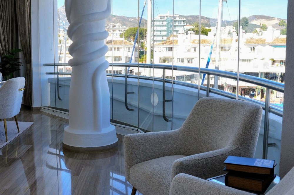 - Do you dream of living a fantasy on an island in the sea? Keep reading, because now your dream could come true. We present this luxurious apartment completely renovated with high qualities and finishes. Its location in the Marine Islands allows unbeatable views of the magical port and its many boats and yachts. This exclusive property offers a large area that integrates the very bright living room with the modern fully equipped kitchen, also thanks to its Lumón enclosure on the terrace that surrounds it you can enjoy clarity and impressive views. It has three bedrooms: the master bedroom is very spacious, equipped with a built-in wardrobe, and has direct access to the terrace with large windows so you can enjoy plenty of light. The second bedroom is equipped with a double bed and also has access to the terrace. The third bedroom has a triple bunk bed. The bathroom, with an elegant and functional design, is complete and is equipped with a comfortable shower tray and a double sink. On top of all this, you can find a laundry room and also included in the price comes a convenient storage room. The exclusive communal area is equipped with a large solarium, and a dream swimming pool, ideal for soaking in its refreshing water after a hot day of sun and beach. If you are looking for a truly exclusive and unique location from where you can access the beach on foot, and the best restaurants in the Port and a large number of sports and leisure activities... This property is for you ! This is an incredible opportunity to enjoy a lifestyle of the highest quality with all luxury at your fingertips. Do not hesitate to contact us to arrange a visit.