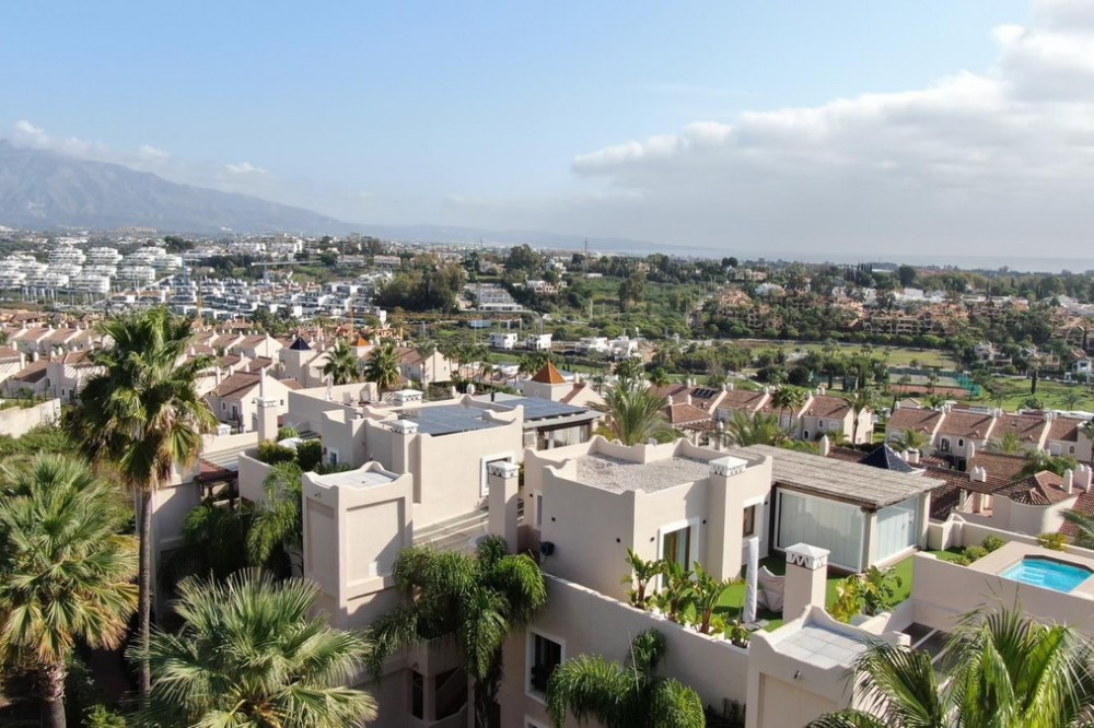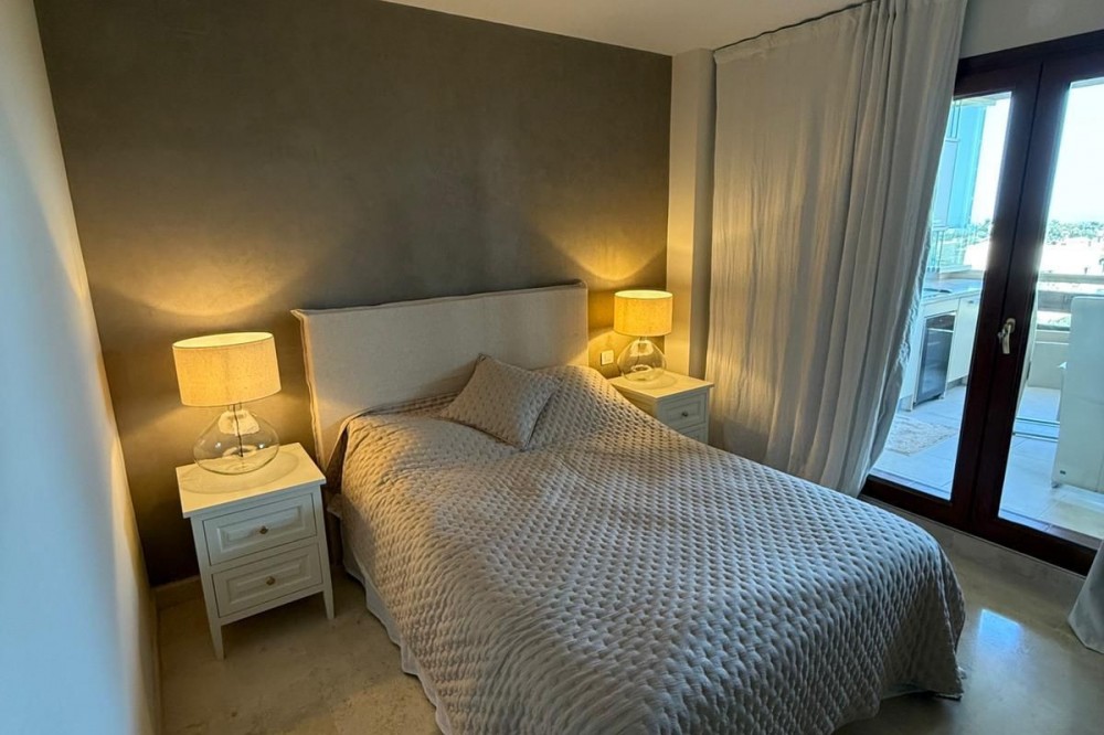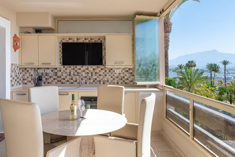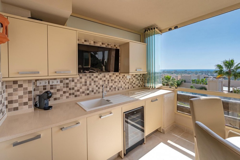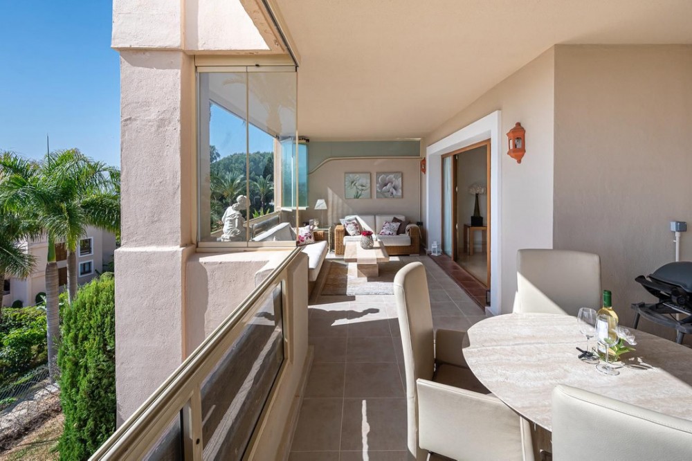 - This modern and bright 2-bedroom, 2-bathroom apartment is ideally located frontline to golf in El Paraíso, offering a perfect combination of tranquility, views, and Mediterranean lifestyle. The property features a spacious and light-filled interior, designed with a contemporary style and comfortable layout. The living area opens onto a sunny private terrace with a barbecue area, ideal for outdoor dining and entertaining while enjoying the spectacular panoramic views of the golf course, mountains, and the sea. Both bedrooms are well-sized, with the master bedroom benefiting from an en-suite bathroom. The apartment also includes a private storage room and a parking space, adding convenience and practicality. Residents can enjoy beautifully maintained communal gardens and a swimming pool, all within a peaceful residential environment surrounded by nature and golf. Located just a short drive from beaches, restaurants, and all amenities of Estepona and Marbella, this property is ideal as a permanent home, holiday retreat, or investment opportunity on the Costa del Sol.