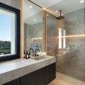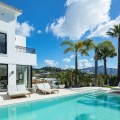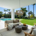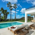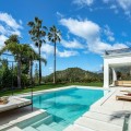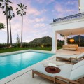 - Stunning Renovated 5-Bed Villa in Los Arqueros, Sea Views, Pool & Smart Home Discover Villa Fortuna, a beautifully renovated luxury villa in the prestigious gated community of Los Arqueros. Boasting spectacular views over Los Arqueros Golf Course and the Mediterranean, this Mediterranean-style home blends timeless design with modern elegance. Spanning 972 m² on a 1,016 m² plot, the villa offers bright, sunlit interiors and expansive terraces. It features five spacious bedrooms, each with ensuite bathroom, plus a guest powder room. The open-plan ground floor includes a sophisticated living area, a custom Danish kitchen equipped with Gaggenau and Siemens appliances, Dekton countertops, and sleek lacquered cabinets. Adjacent is an elegant dining area and a cozy TV lounge—ideal for relaxation or entertaining. Outside, lush landscaped gardens welcome outdoor living: al fresco dining with barbecue, sunbathing zones, and even a private outdoor gym. South-facing orientation ensures optimal sunlight, and the 50 m² pool is perfect for cooling off in luxury. The top floor hosts a luxurious master suite with walk-in closet, lavish bathroom, and private terrace offering panoramic vistas. Two additional ensuite bedrooms and multiple terraces on this level provide ample space for family or guests. The lower level is dedicated to entertainment: a stylish bar/lounge, glass wine cellar for collectors, and a bespoke cinema room. Car enthusiasts will appreciate the garage with glass wall showcasing vehicles. Modern smart home tech includes Control4 system, Sonos sound, underfloor heating, and pre-installed solar panels for sustainability and comfort. Premium finishes—Porcelanic tiles, custom bathroom features—define the villa’s elegant, cohesive aesthetic. The Villa offers luxury, privacy, and proximity to Marbella—ideal for golf lovers or anyone seeking upscale Mediterranean living. Contact Homerun Brokers today to schedule a private viewing of this exceptional property.