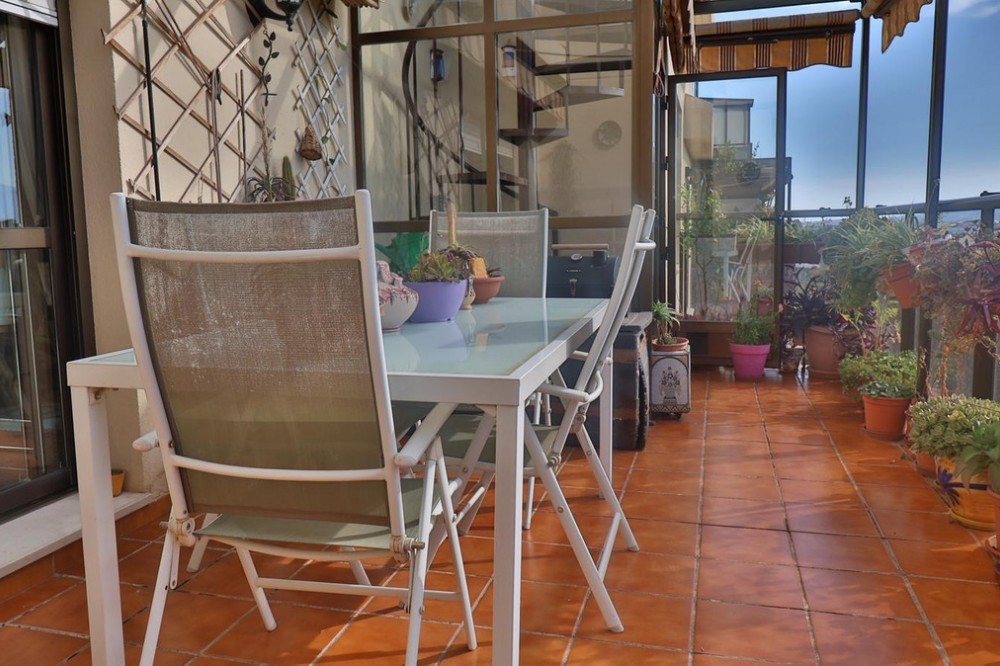 - ???? Agency fees included in the price ???? Property for sale exclusively We present this spectacular duplex penthouse built in 2004, located in Parque Azalea, one of the most sought-after residential complexes in Teatinos – El Cónsul. A real opportunity in an area where properties like this do not stay on the market for long. The property has 114 m2 built, including terraces and laundry area (123 m2 including communal areas), distributed in a comfortable and functional layout. In addition, it features a 41 m2 upper-floor solarium, significantly increasing the usable and enjoyable living space. ???? Registry and cadastral information: 155 m2 built 101 m2 usable living space 12 m2 garage 6 m2 storage room 36 m2 communal elements Upon entering, you are welcomed by a spacious hallway leading to a bright living room with direct access to the main terrace, equipped with awnings—perfect for enjoying Málaga’s climate all year round, offering great views and generous space. The property benefits from centralized air conditioning, ensuring comfort throughout all rooms year-round. The independent kitchen, complete with a laundry area, is practical and bright, with natural ventilation and exterior access—ideal for everyday living. There are 3 bedrooms, all exterior and filled with natural light. The master bedroom includes an en-suite bathroom with bathtub, and there is an additional guest bathroom with shower, making a total of 2 bathrooms. In the hallway leading to the bedrooms, there is a built-in wardrobe area, providing extra and practical storage space. ???? The standout feature of this property is its outdoor space: On the upper floor, you’ll find an impressive 41 m2 private solarium, accessed via an elegant glass spiral staircase. A unique space that combines a covered enclosed terrace area (ideal as a dining room, office, or chill-out area) and an open outdoor space with a shower—perfect for enjoying complete privacy. Additionally, the living room opens onto a spacious terrace on the main level, adding even more value and enjoyment to the home. ???? Includes: Garage space Storage room ???? Residential complex features: Swimming pool Landscaped gardens Children’s playground ???? Costs: Property tax (IBI): €448.25/year Community fees: €106.55/month ???? Prime location in Teatinos – El Cónsul: A well-established, quiet, and highly demanded area, surrounded by all essential services: Mercadona on the same street Universities Hospitals Supermarkets and shops Public transport and metro within minutes Excellent access to the motorway ???? An ideal property both as a permanent residence and as a secure investment in one of Málaga’s most in-demand areas. ???? Financing services available. Contact us for no-obligation advice. This type of duplex penthouse in Teatinos rarely stays on the market for long. The indicated price does not include the costs associated with the purchase of real estate according to current legislation, nor the agency fees of 2% + VAT. Additional costs to be borne by the buyer include: Property Transfer Tax (ITP): 7% of the purchase price. Notary fees. Land Registry fees. Administrative (conveyancing) fees. The buyer has access to the official Property Information Sheet at our office, in accordance with the Royal Decree of October 11. The information provided is for guidance purposes only and does not constitute a contractual agreement. The offer is subject to errors, price changes, omissions, availability and/or withdrawal from the market without prior notice.