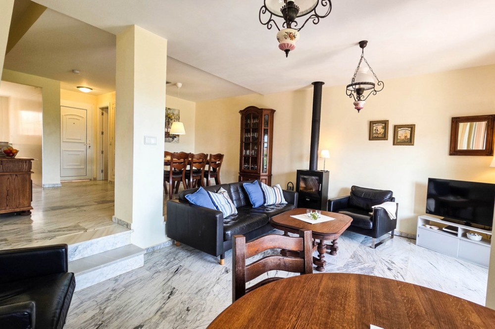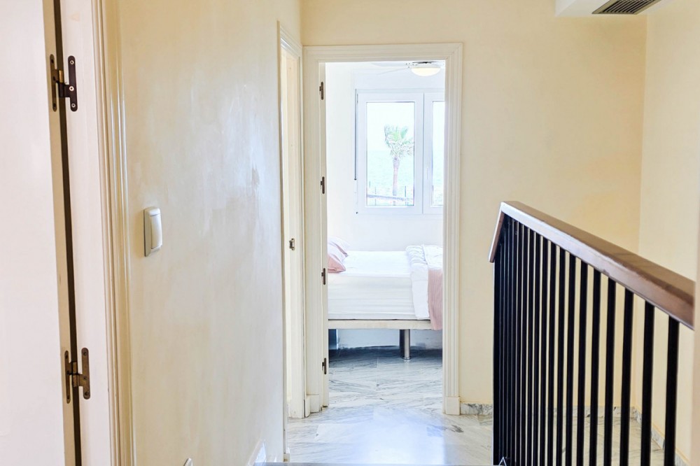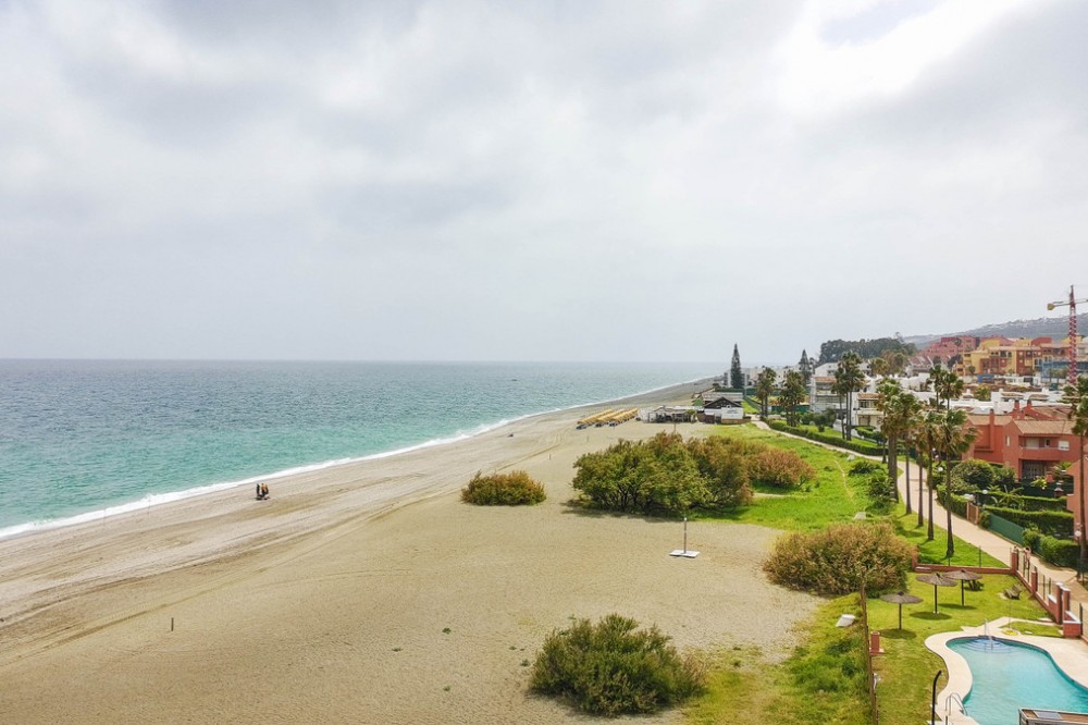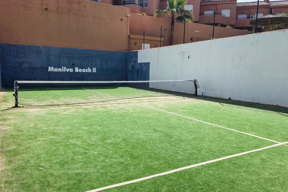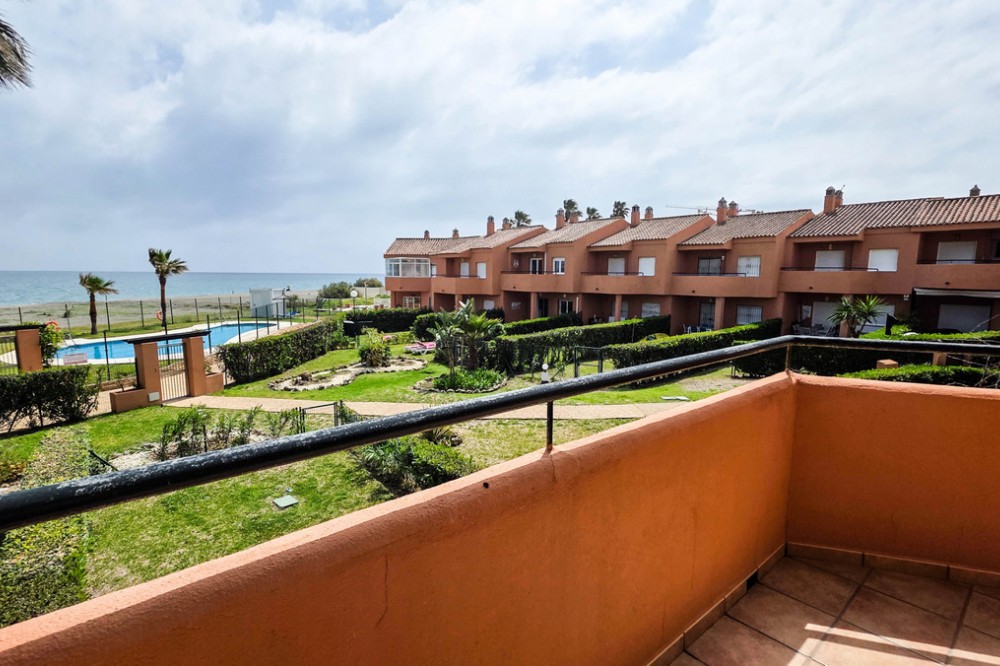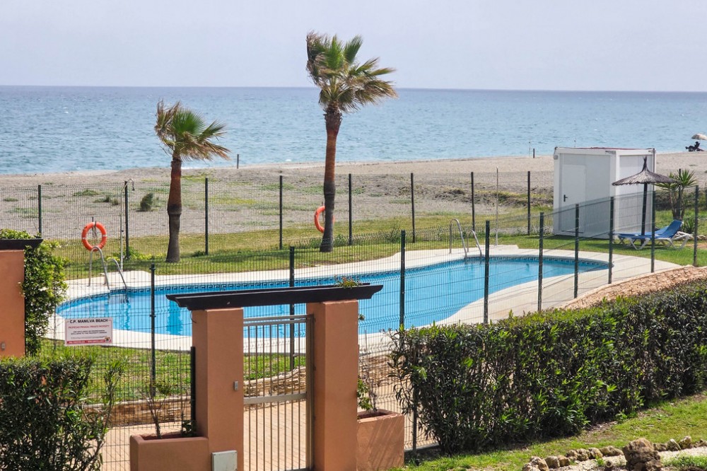 - Frontline Beach Townhouse with Private Garden and Panoramic Sea Views in Manilva Beach Set in a true frontline beach position within the established Manilva Beach community, this refurbished south-facing townhouse offers direct access to the Mediterranean lifestyle, just a few steps from the sand. With panoramic sea views and a private garden, the property combines coastal living with comfort and privacy in a well-connected location. The townhouse is arranged over two levels and features three bedrooms, two bathrooms, and a guest WC, providing a practical layout for both everyday living and hosting family or guests. The main living area opens onto a private garden, where the sea views create a natural extension of the home — ideal for outdoor dining, relaxing, or simply enjoying the surroundings. Thanks to its south-facing orientation, the property benefits from natural light throughout the day, enhancing both the interior spaces and outdoor areas. The home has been refurbished, offering a fresh and updated feel while maintaining a functional design. Residents of Manilva Beach enjoy access to communal swimming pools, landscaped gardens, a padel court, and a tennis court, creating a balanced lifestyle with both leisure and activity options. With the beach just steps away and local amenities within easy reach, the location is both convenient and peaceful. Málaga Airport is approximately 1 hour away by car, while Gibraltar Airport can be reached in around 30 minutes.