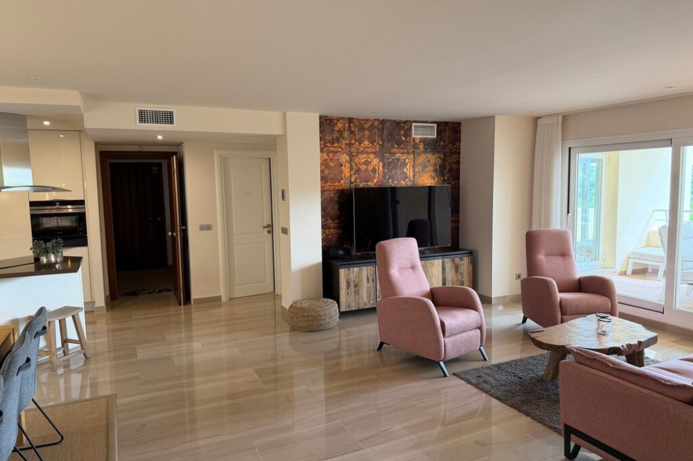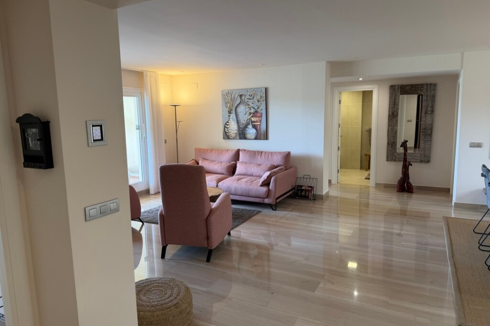 - Welcome to this attractive and well-laid-out apartment located in the sought-after area of Castillo del Cerrado in Mijas Costa, surrounded by a peaceful environment and offering views of both the golf course and the Mediterranean Sea. The property has approximately 130 m², distributed across three spacious bedrooms and two bathrooms, making it an ideal choice as a permanent residence, holiday home, or investment. The apartment’s standout feature is its large terrace, with impressive views of the golf course and the sea – perfect for relaxing, enjoying outdoor living, and dining in the sun all year round. Additionally, the property has a private garden/terrace area of 53 m² for exclusive use, providing extra outdoor space and creating a rare combination of apartment and villa-like feel. Inside, the apartment is bright and welcoming, with a functional layout where the living room and lounge areas have direct access to the terrace. The kitchen is practically arranged, and the property offers ample storage space. The property includes: 3 bedrooms 2 bathrooms Spacious living room with terrace access 2 large terraces Private garden (53 m²) Private parking space The property is part of a well-maintained urbanisation with a communal pool area, green spaces and a heated indoor pool creating a relaxed and exclusive atmosphere. The location is ideal, with easy access to golf courses, the beach, Fuengirola, and all daily amenities, while enjoying a peaceful setting. An excellent opportunity for buyers seeking space, views, and unique outdoor areas on the Costa del Sol. Contact us for more information or to arrange a viewing.