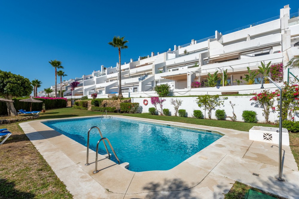 - Discover this beautifully refurbished middle-floor apartment located in La Quinta, Benahavís. Offering approximately 100 sqm of elegant interior space, the property combines comfort, light, and open views in a serene setting. The generous terrace enjoys panoramic mountain scenery with glimpses of the sea, creating the perfect space for outdoor dining, morning coffee, or evening sunsets. Inside, the apartment features three well-proportioned bedrooms and two modern bathrooms. The bright and airy living area connects seamlessly to the terrace, enhancing the indoor-outdoor lifestyle. The master suite benefits from its own private bathroom and direct terrace access, adding a sense of privacy and calm. El Mirador II is a well-kept residential complex with landscaped surroundings and a communal swimming pool. The location offers tranquility while remaining close to essential amenities. A golf course is just 500 meters away, daily services such as a supermarket and café are within 1.5 km, and Puerto Banús can be reached in approximately 4.5 km.