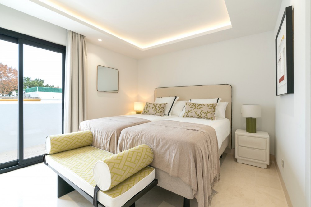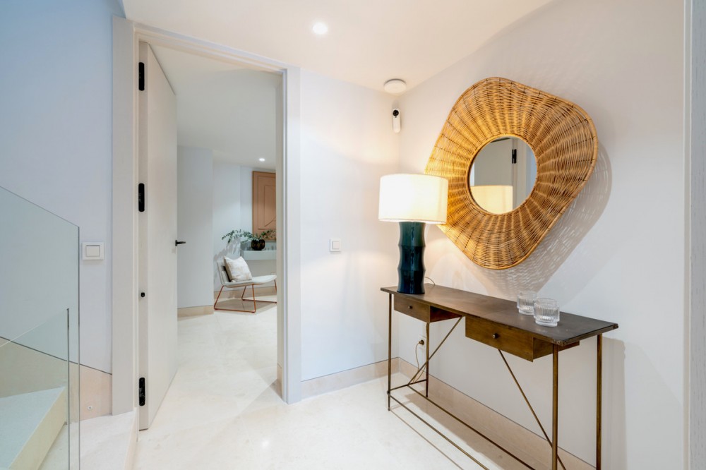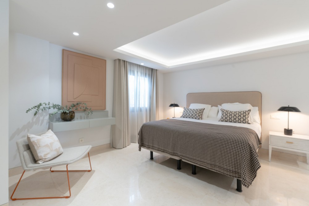 - An exceptional luxury residence, brand new and recently renovated, located just a few meters from the iconic beaches of Marbella’s prestigious Golden Mile. This property stands out for its contemporary design, natural brightness, and refined elegance, offering a private and sophisticated retreat in one of the most sought-after areas of the Costa del Sol. The home features five spacious en-suite bedrooms, thoughtfully designed to ensure maximum comfort, making it ideal for families or as a high-end investment in the luxury rental market. Every space has been crafted with premium materials and meticulous attention to detail. Outdoors, the property boasts two generous terraces—one at the front and one at the rear—both furnished with designer outdoor pieces and elegant dining areas, perfect for enjoying unforgettable evenings surrounded by tranquility and the gentle Mediterranean breeze. The house is sold fully furnished, with a state-of-the-art fully equipped kitchen and modern systems, including air conditioning, ensuring an exceptional living experience. Set within a beautifully maintained private community with lush gardens, residents can enjoy exclusive amenities such as two swimming pools, a tennis court, and a paddle court. In addition, the scenic promenade connects Marbella to Puerto Banús, allowing easy access on foot or by bicycle to a wide range of leisure options, luxury boutiques, and fine dining experiences. Marbella is synonymous with sophistication, exclusivity, and natural beauty. The Golden Mile, considered the epicenter of luxury, is home to some of Europe’s most prestigious properties. This residence, located in the renowned Marbellamar community, represents a unique opportunity to live or invest in a truly exceptional setting.