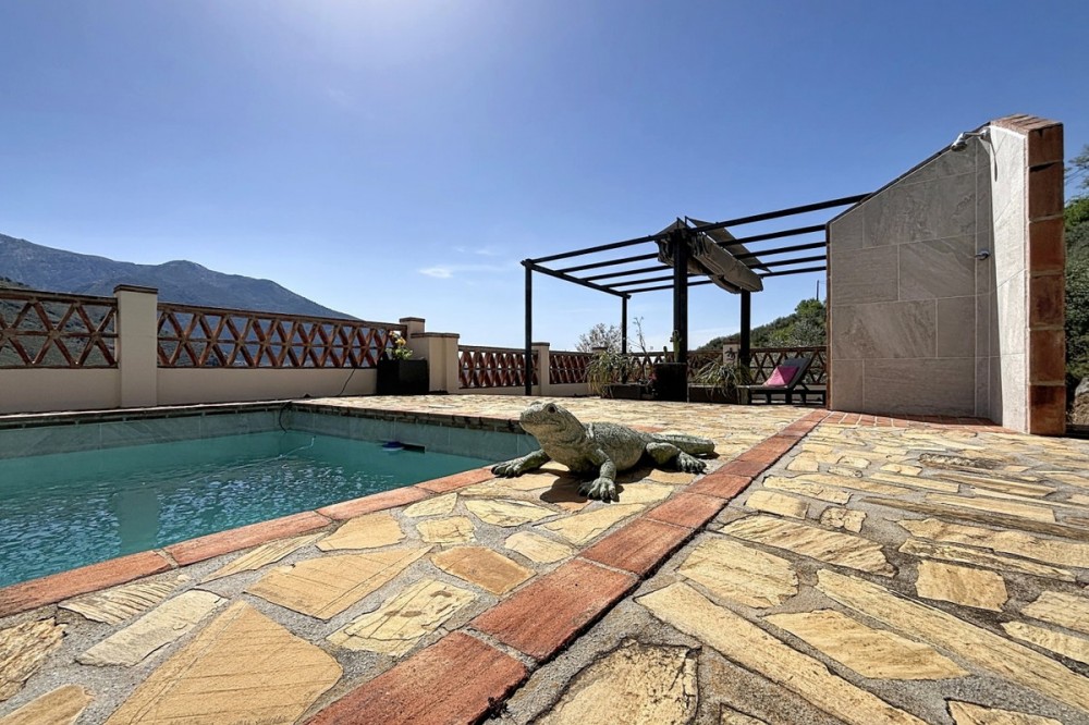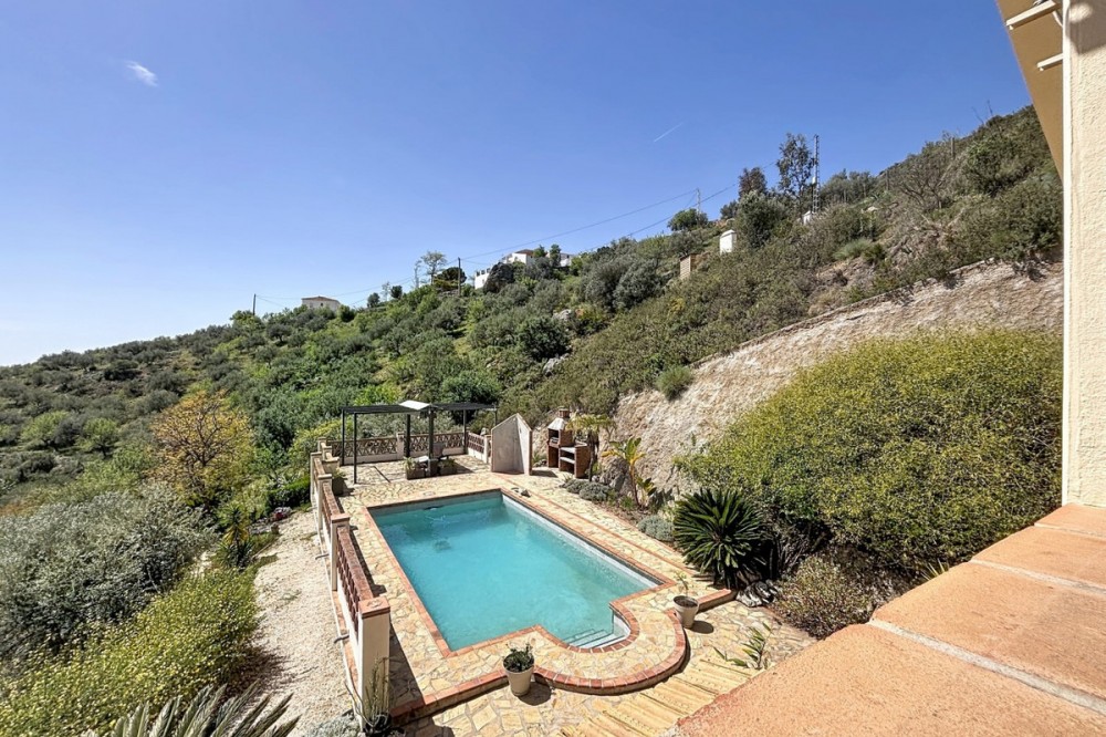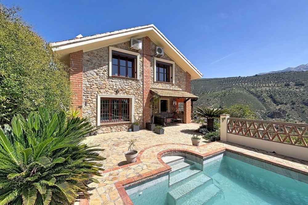 - Magnificent villa for sale in Alcaucín, ideal for those looking for space, comfort and to enjoy the natural environment. In the main house, on the first floor, we find a spacious and bright living-dining room with an open kitchen, creating a modern and functional space, as well as a bedroom and a full bathroom. On the second floor, the house has 3 bedrooms, one of them with an en-suite bathroom, as well as another bathroom, offering comfort and privacy for the whole family. Outside, the property has two covered terraces, perfect for enjoying all year round, as well as a private pool, outdoor shower and barbecue area, ideal for leisure and rest. It also has a separate room, currently used as a storage room, but with the possibility of adapting it as a guest apartment, providing great added value to the property. The house enjoys stunning mountain views and slight sea views, creating a unique and privileged environment. A villa with a lot of potential, in a quiet environment, perfect both as a permanent home and to enjoy getaways. We are delighted to be able to present this property to you soon, either personally or via virtual viewing. Because this world is unique - like our Axarquía. In Andalusia. On the Costa del Sol. Here, on the sunny side of life...