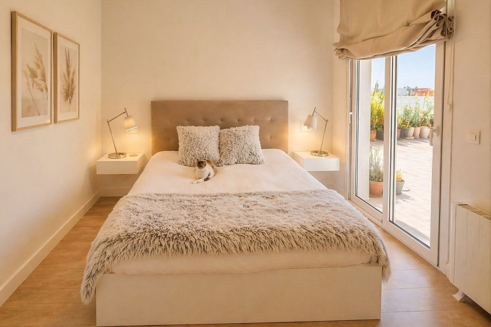 Features: fitted wardrobes, private terrace, satellite tv, storage room, utility room, barbeque, double glazing