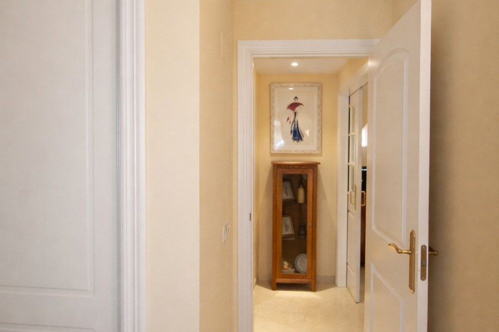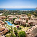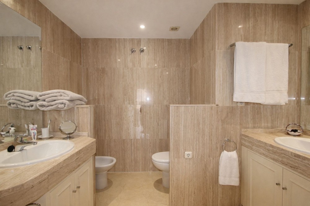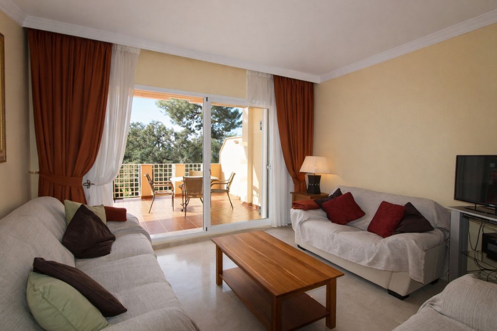- Discover this beautifully presented 2-bedroom, 2-bathroom middle-floor apartment, perfectly positioned to enjoy both privacy and convenience. Set within the sought-after Jardines de Santa María Golf, this gated urbanisation with on-site security offers both privacy and peace of mind. The development truly lives up to its name, featuring beautifully maintained, mature landscaped gardens that create a peaceful, green oasis for residents, who also benefit from access to three well-kept swimming pools, perfectly integrated within the gardens, providing ideal spots for relaxation and leisure in a tranquil setting. The property offers an open living space, with access to a generous sunny terrace. You can enjoy relaxing views over the communal pool and lush green surroundings, the ideal setting for morning coffee or evening entertaining. Both bedrooms are well-proportioned and feature en-suite bathrooms, offering comfort and privacy for residents and guests alike. The Master bedroom has access to the large south/west facing terrace. The layout is practical and inviting, making it equally suitable as a permanent residence, holiday home, or investment. Set within a well-maintained community, the apartment benefits from a peaceful environment while being within easy walking distance to local amenities, including shops, restaurants, and services, combining tranquility with everyday convenience. The property comes with underground parking and a store room. With several top-tier schools nearby, the area is particularly well-suited for families seeking quality international education without long commute times, further enhancing its appeal as a permanent residence. The Beach of Elviria is reachable within a short walk of 15 mins, Marbella town is a 10mins drive and Malaga airport is only a 30 mins drive away.