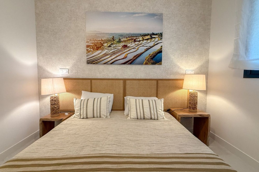 - Luxurious and sought after urbanisation of Oasis 325 in Selwo, Estepona. This brand new urbanisation boasts exceptional facilities set within lush tropical gardens, including several swimming pools, indoor heated pool, gym and wellness centre along with a spacious co-working and social area. This beautifully furnished apartment features three spacious bedrooms with two bathrooms, bright open plan living, dining and kitchen area with large windows allowing for plenty of natural light. The living area leads onto its large private terrace overlooking the communal garden area and surrounding mountains. Built with the highest finishes and with hot/cold air-conditioning throughout, this property offers the utmost in modern, contemporary living. Underground parking and storage room are also included. Located next to La Resina Golf and Country Club and minutes away from the Atlas American School. This rapidly developing area has a nearby sports and paddle tennis centre and is within just a short drive to the local beaches, the charming town of Estepona and just a 15 minute drive to Puerto Banus and Marbella. Strong investment opportunity for holiday rentals.