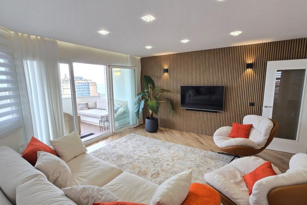 - This 170-square-meter apartment in Benalmádena Costa is more than just a property; it is the perfect setting to build your best memories. What truly sets this home apart, beyond its incredible natural light, is its spectacular 40-square-meter covered terrace, designed as an outdoor living area that includes its own barbecue zone, perfect for memorable dinners with the sound of the sea in the background. Upon entering, an elegant hallway leads to a spacious and cozy living-dining room that reflects the care of a comprehensive renovation focused on real comfort. The property features completely updated electrical and plumbing systems, along with high-quality details such as premium laminate flooring, energy-efficient air conditioning, and smart lamps with integrated fans and speakers. The layout is ideal for a family or for hosting guests, offering four bedrooms and two full bathrooms equipped with electric towel rails to ensure maximum comfort. Additionally, the price includes a 20-square-meter parking space and an 8-square-meter storage room, providing practical solutions for space and organization. Living here means enjoying an unbeatable location right on the Promenade, within a quiet residential complex featuring swimming pools and green areas. The proximity to Paloma Park, Bil Bil Castle, and all essential services—from supermarkets to the local train station—allows you to leave the car behind and fully enjoy the surroundings on foot. Whether as a secure investment or the beachfront home you have always dreamed of, this is an exceptional opportunity that must be seen to be truly appreciated.