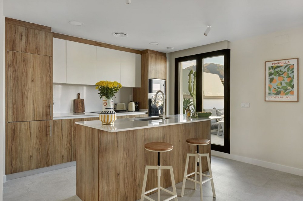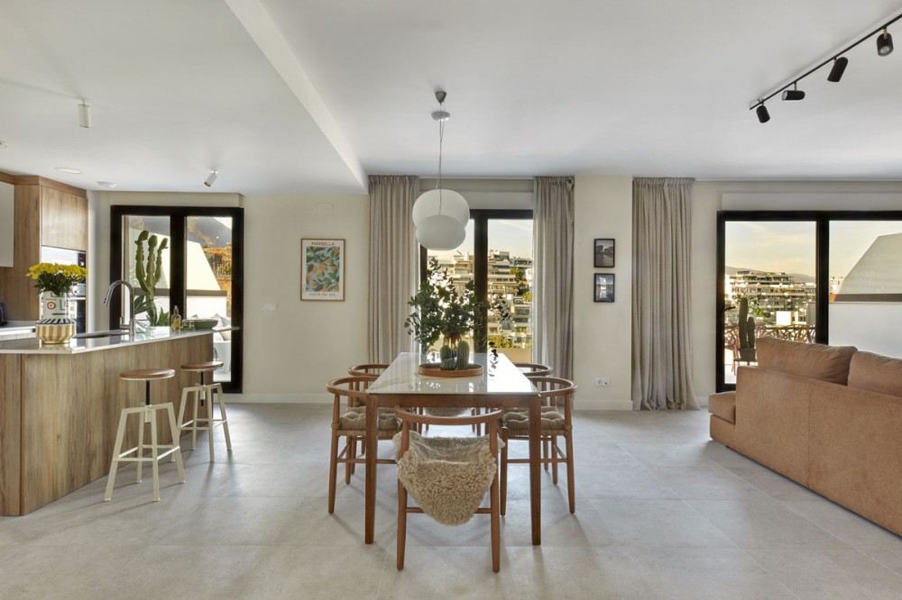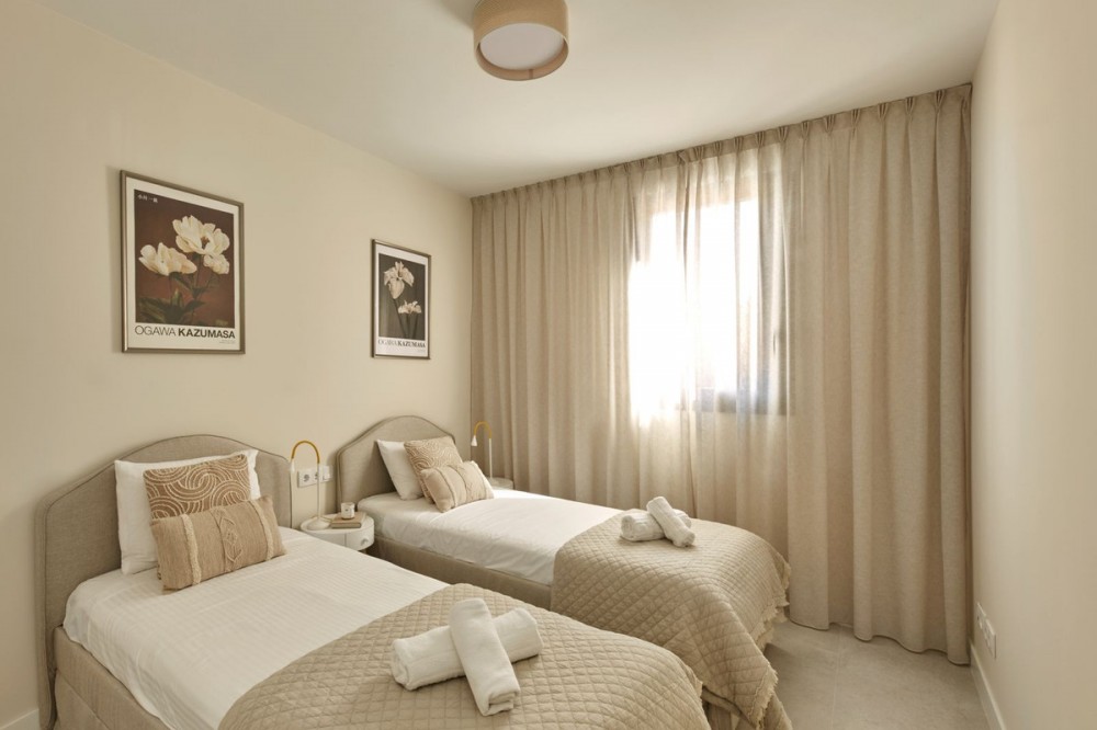 - Exceptional 3-Bedroom Apartment | Las Mesas, Estepona Located in one of the most sought-after areas of Estepona – Las Mesas – this apartment offers everything a discerning buyer expects: space, privacy, high-quality finishes, and strong investment potential. An additional standout feature is the panoramic view over the park, the city, and the sea, giving the property a truly unique character. Properties of this kind rarely come onto the market. This is an opportunity for those seeking something beyond the standard offering. Space and Natural Light The apartment has been designed with everyday comfort in mind. The spacious living area, filled with natural light through large floor-to-ceiling windows, seamlessly connects to an impressive terrace, extending the living space outdoors while allowing full enjoyment of the open panoramic views of greenery, the city, and the Mediterranean Sea. The terrace is one of the key highlights — large, private, and ideal for relaxation and social gatherings in true Costa del Sol style. Well-designed layout: – 3 comfortable bedrooms – 2 bathrooms, both with showers (one upgraded from a bathtub) – bright, open-plan living area – functional kitchen with dining space Quality and Finishes The property has been carefully upgraded and furnished by the owner with attention to detail and aesthetic consistency: – modern lighting system throughout the apartment, particularly in the living area – upgraded guest bathroom – elegant finishes and thoughtfully selected furnishings The apartment is sold fully furnished and equipped, allowing immediate use or rental. Privacy and Exclusivity This is one of the most unique units within the development: – only 2 apartments of this layout in the entire complex – just one neighbour on the same floor – spacious and quiet entrance area Additionally: – 2 parking spaces – private storage room Location – Las Mesas, Estepona A modern and rapidly developing area of Estepona, considered one of the most promising locations on the Costa del Sol. Within walking distance: – marina and port – beach – town centre and old town – sports club and padel courts – restaurants, services, and schools A location that perfectly combines lifestyle and investment value. Investment Potential – active tourist rental license – currently operated as a short-term rental (booking calendar available) – possibility to take over an established rental business An ideal solution for investors looking for a turnkey, income-generating property. Additional Information – IBI: approx. €685/year – 2 parking spaces and storage room included – access to communal areas: swimming pool, gym – full documentation available Price: €769,000 This property is ideal for buyers who value privacy, quality, and well-considered investments. Please contact me for full details and a private presentation.