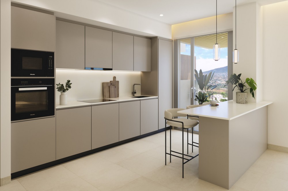 - Sunrise Golf Residences is an exclusive residential development set in a unique natural environment, right on the prestigious La Cala Golf course, offering spectacular views of the mountains, the sea, and the golf course. Every detail has been carefully designed to provide a home that combines style, comfort, and functionality in a privileged setting. With a total of 48 apartments, featuring 2 and 3 bedrooms, the residences stand out for their intelligent layouts, carefully selected materials, and spacious interiors that maximize natural light. The integrated kitchens open onto elegant living-dining areas, creating open, welcoming spaces. Appliances are included. Large windows allow the outdoors to become part of the interior, connecting to generous terraces that expand the living space. The use of continuous flooring and high-performance fixtures reinforces the sense of harmony between indoor and outdoor areas. To ensure comfort throughout the year, the homes are equipped with underfloor heating, ducted air conditioning, pre-installed home automation systems, and thermally insulated carpentry. Bedrooms offer a peaceful and bright atmosphere, with ample wardrobes and en-suite bathrooms designed with both style and functionality in mind. Outdoor spaces take center stage at Sunrise Golf Residences. Private terraces allow residents to enjoy the natural surroundings and views of the golf course, the sea, or the mountains. Some homes, such as penthouses and ground-floor units, offer the possibility of adding a private pool and an outdoor kitchen area—perfect for making the most of the exceptional Costa del Sol climate. Among the common areas of this development are an infinity pool, a second beach-style pool surrounded by greenery, and extensive landscaped gardens. Additionally, there is a gym with indoor and outdoor spaces, ideal for staying active; a full wellness area with sauna and hydro-massage; a social gastrobar area; and a business center designed for modern remote working. Each apartment also includes a garage with pre-installation for electric cars and a storage room. These apartments are a dream for any golf enthusiast. Located on the front line of La Cala Golf, Europe’s largest golf complex, Sunrise Golf Residences combines a natural setting, quality services, and proximity to the sea. The development is just a 10-minute drive from La Cala de Mijas beach and 25 minutes from Málaga Airport, making it a place to enjoy the Mediterranean at its finest. Your new home, where design, tranquility, and nature come together. Welcome to Sunrise Golf Residences.