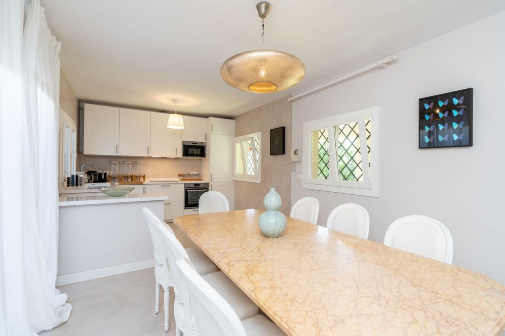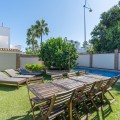 - !Your Dream Beachside Villa in Marbella! The renovated Villa is only 300meters to the Sea! Are you ready to experience the epitome of beachside living? Look no further than this spectacular beachside villa, nestled directly on the pristine San Pedro Beach in the heart of Marbella. Property Highlights: Built to Perfection: This villa boasts meticulous renovation, offering the highest quality of craftsmanship and materials. Spacious Living: With a generous build size, this home offers the perfect space for you and your family to thrive. South-Facing Elegance: Enjoy year-round sunshine on your south-facing plot of land, totaling a remarkable number of square meters. Two Levels of Luxury: The villa is thoughtfully designed over two levels to maximize space and comfort. Ground Floor: Step into an inviting living room seamlessly connected to an open American fully equipped kitchen, creating a welcoming atmosphere for gatherings with loved ones. The ground floor also features three spacious bedrooms, ensuring ample accommodation options. Plus, there's a separate apartment complete with a sprawling dressing area and a luxurious bathroom. First Floor: Ascend to the first floor, where you'll discover the master bedroom with an ensuite bathroom, all complemented by a charming terrace offering breathtaking views of the sea and the iconic La Concha mountain. This level also features another bedroom with an ensuite bathroom, providing convenient and private living spaces. Outdoor Oasis: Relish in your private paradise, complete with a large pool perfect for refreshing swims and a mature garden that exudes tranquility. The outdoor spaces are designed for relaxation and entertaining, making it the ideal backdrop for unforgettable moments with friends and family. Unbeatable Location: This villa's location is simply unbeatable! You'll find yourself in close proximity to renowned restaurants, esteemed schools, convenient transport options, and, of course, the beautiful San Pedro Beach and the iconic Paseo Maritimo, where leisurely strolls along the coastline are a daily delight.