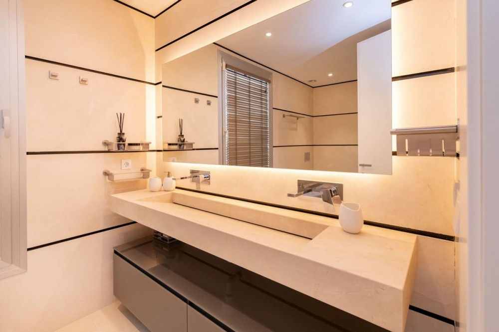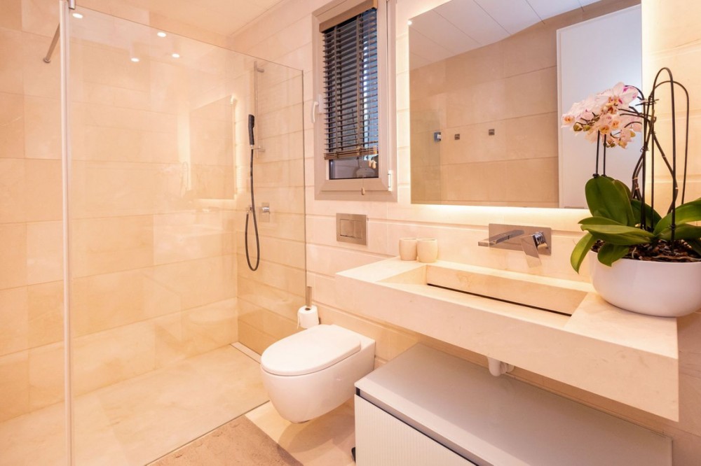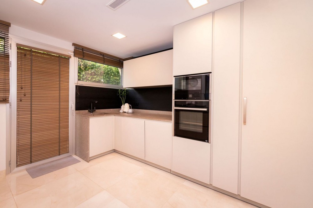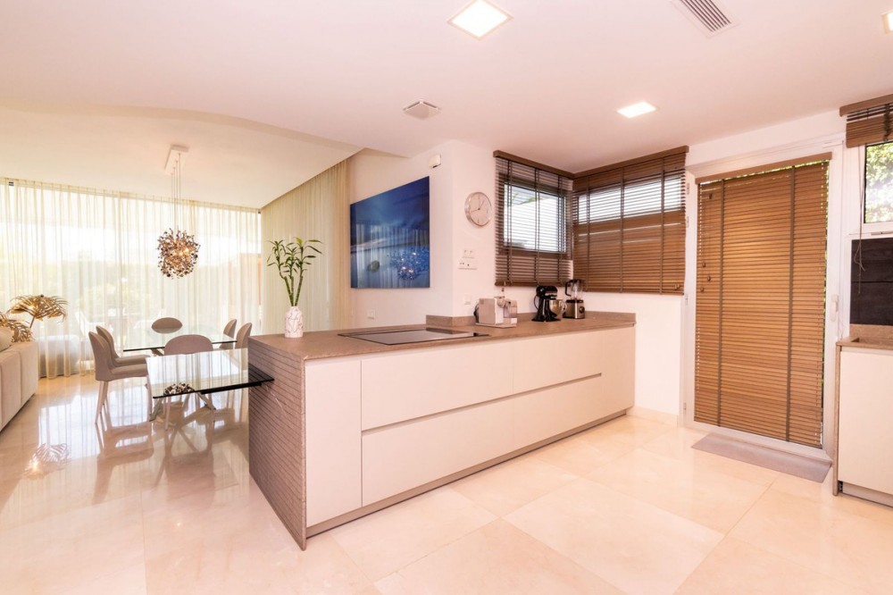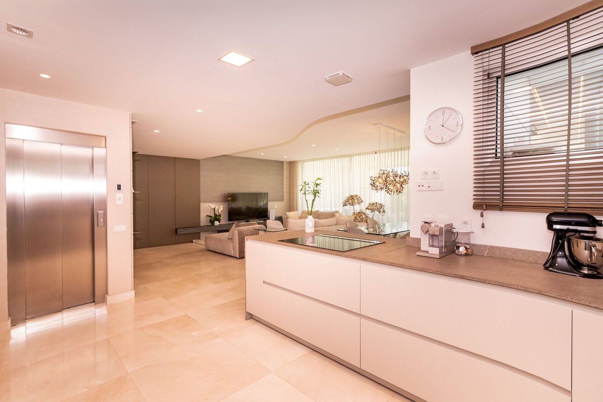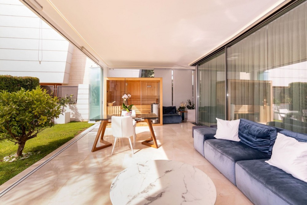 - Superb location, excellent infrastructure and great renting potential! Luxury contemporary style villa, elegant and with high quality finishes, with private garden and within a 10 villa development with 24h security, being one of the more discreet villas in the urbanization since it is located at the back and no one can walk right past it unless they are going there. The villa is located in the residential area of Nueva Alcantara within walking distance to the beach and the amenities in the surrounding area. The property enjoys a large living-dining room with open plan kitchen. Spacious terraces for each of the 4 bedrooms. The master bedroom includes en-suite. A basement ideal for a cinema room or additional bedroom. Elevator from the ground floor to the solarium with private pool and slight sea views. The owner has upgraded the finishes of the villa using the highest quality materials. The property includes air conditioning, underfloor heating, video intercom, 2 storage rooms and an underground garage with 3 parking spots. Built: 290 m2 Plot: 348 m2 Bedrooms: 4 Bathrooms: 4 - Gated community - 24h security service - CCTV cameras - Video entry phone - Air conditioning - Underfloor heating (throughout the house) - Domotic system - Lift - Solarium - Sauna - Automatic watering system - Laundry room - Close to beach / sea - Close to padel club