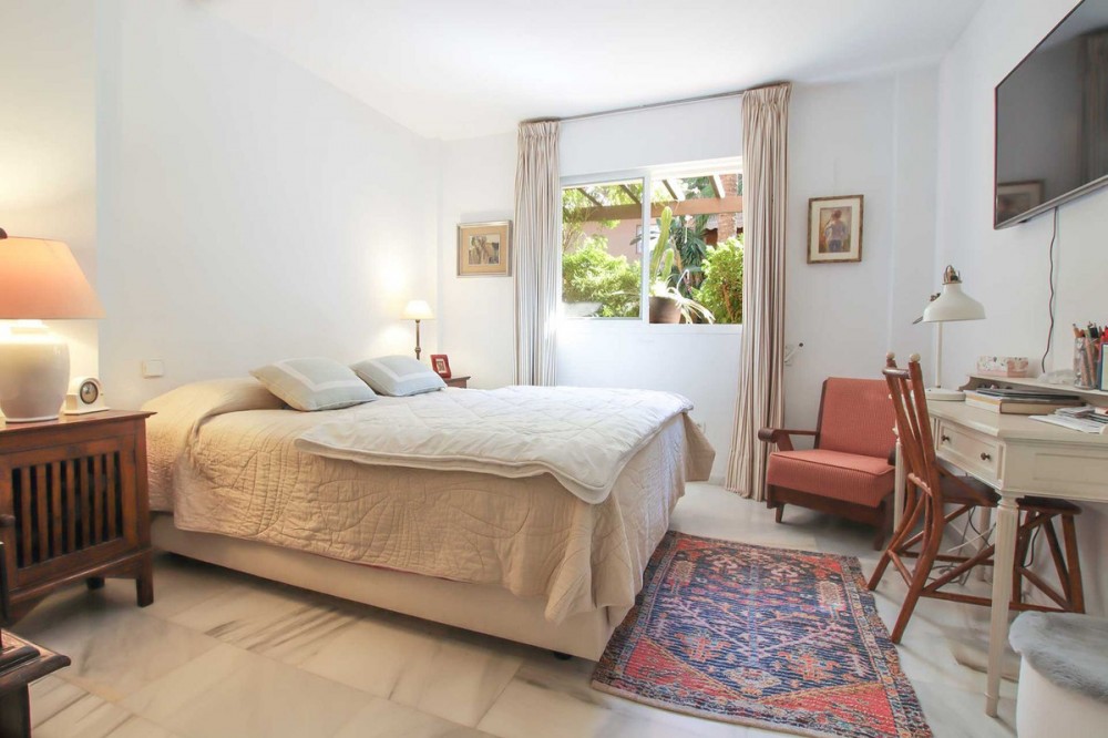 - LUXURIOUS 2-BEDROOM APARTMENT FOR SALE ON MARBELLA’S GOLDEN MILE Discover your dream home in the heart of Marbella's prestigious Golden Mile. This exquisite 2-bedroom, 2-bathroom apartment offering an unparalleled blend of comfort, elegance, and convenience. Property Highlights Prime location in Marbella’s Golden Mile, close to the beach. Spacious 2-bedroom layout with 2 fully equipped bathrooms. Modern kitchen with top-notch appliances and granite countertops. Bright living and dining area with direct access to a private terrace. Covered garage space included for your convenience. Community Features Well-maintained communal swimming pool surrounded by lush greenery. Manicured tropical gardens providing a serene and tranquil environment. Secure urbanisation with privacy and exclusivity. Prime Location This apartment enjoys a strategic location in the Golden Mile, one of Marbella's most iconic areas, known for its upscale lifestyle and proximity to pristine beaches, luxury amenities, and world-class dining. Whether you're looking for a permanent residence or a holiday home, this property offers it all. Apartment Details As you step into this meticulously designed apartment, you’ll be welcomed by a bright and airy ambiance. The interior features elegant furnishings and carefully selected decor that blend modern comfort with timeless charm. The terrace provides an ideal spot to enjoy morning coffee or relax in the evening, surrounded by greenery. Why Choose This Apartment? "Living in Marbella’s Golden Mile is more than just a lifestyle—it’s an experience of luxury, tranquility, and convenience all wrapped into one." With access to top-tier amenities and a location that ensures both peace and accessibility, this apartment is the perfect choice for discerning buyers. Contact Us If you're ready to explore this stunning property in person, don’t hesitate to reach out. This is your opportunity to own a piece of Marbella’s Golden Mile paradise.
