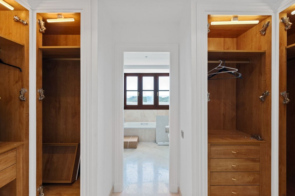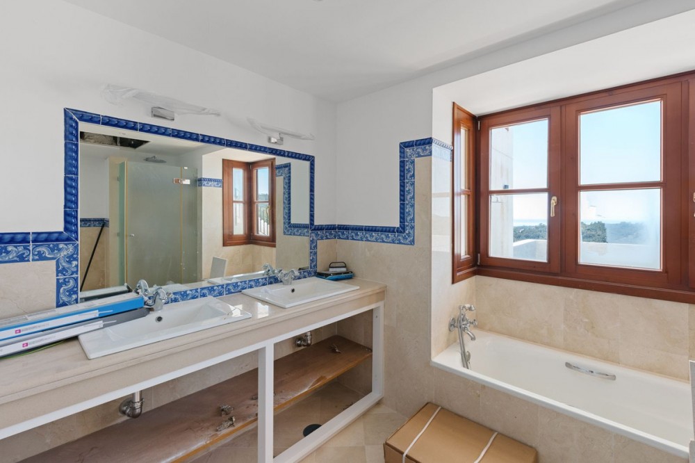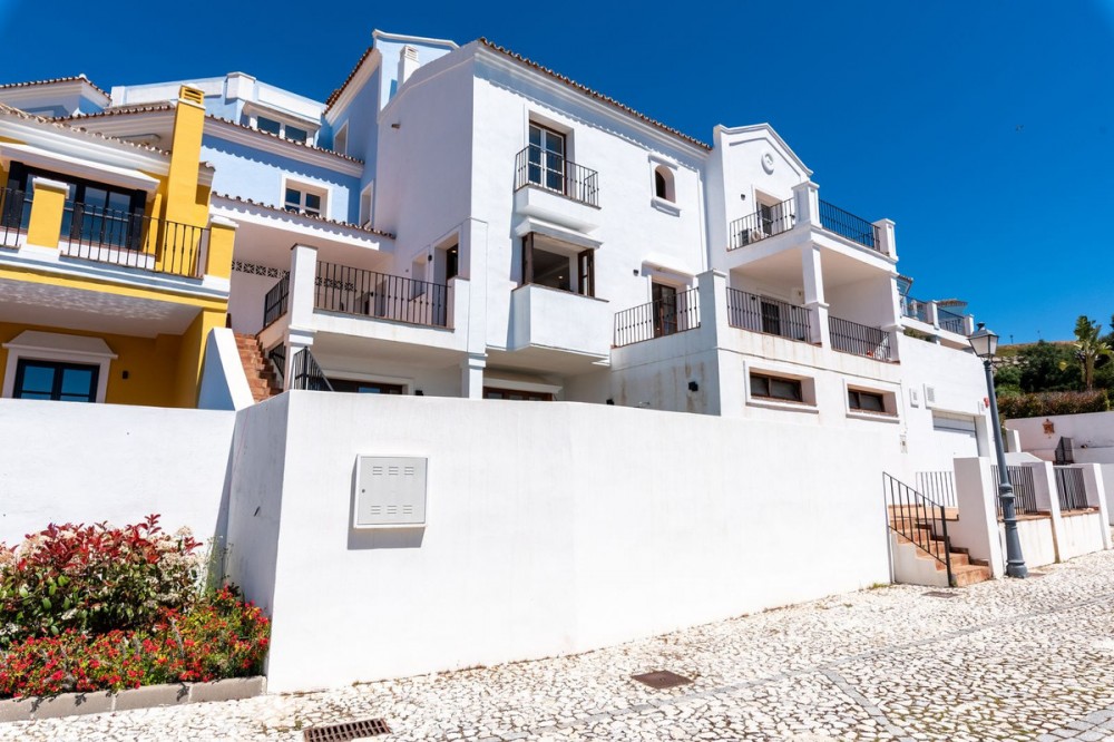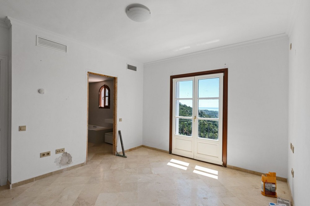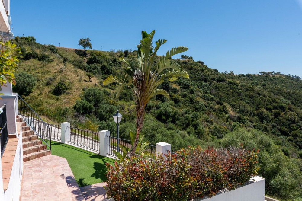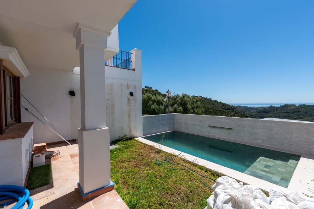 - Located in the secure urbanisation of Monte Mayor in Benahavís, this semi-detached house currently undergoing renovation offers a privileged lifestyle in the heart of the hills, with a south-facing orientation and stunning 180° panoramic sea views. With a built area of 306 sqm, complemented by 77 sqm of terraces and a private garden of 37 sqm, the property will be delivered fully renovated in June 2026 with modern, high-quality finishes. The house features 4 bedrooms, each with its own en-suite bathroom, distributed over several levels: a spacious living area on the ground floor with lounge, dining room, a brand-new fully equipped kitchen with island, and one bedroom; two additional bedrooms on the upper floor; and a fourth bedroom on the lower level with direct access to the private pool. The property benefits from underfloor heating throughout, air conditioning, completely renewed electrical installations, new finishes, and contemporary materials. A private garage and storage room complete this home, located within a gated community with 24-hour security, landscaped gardens, and communal pools. Just minutes from renowned golf courses, and less than 20 minutes from Estepona and Puerto Banús, this property represents an excellent opportunity as a primary residence, holiday home, or investment on the Costa del Sol.