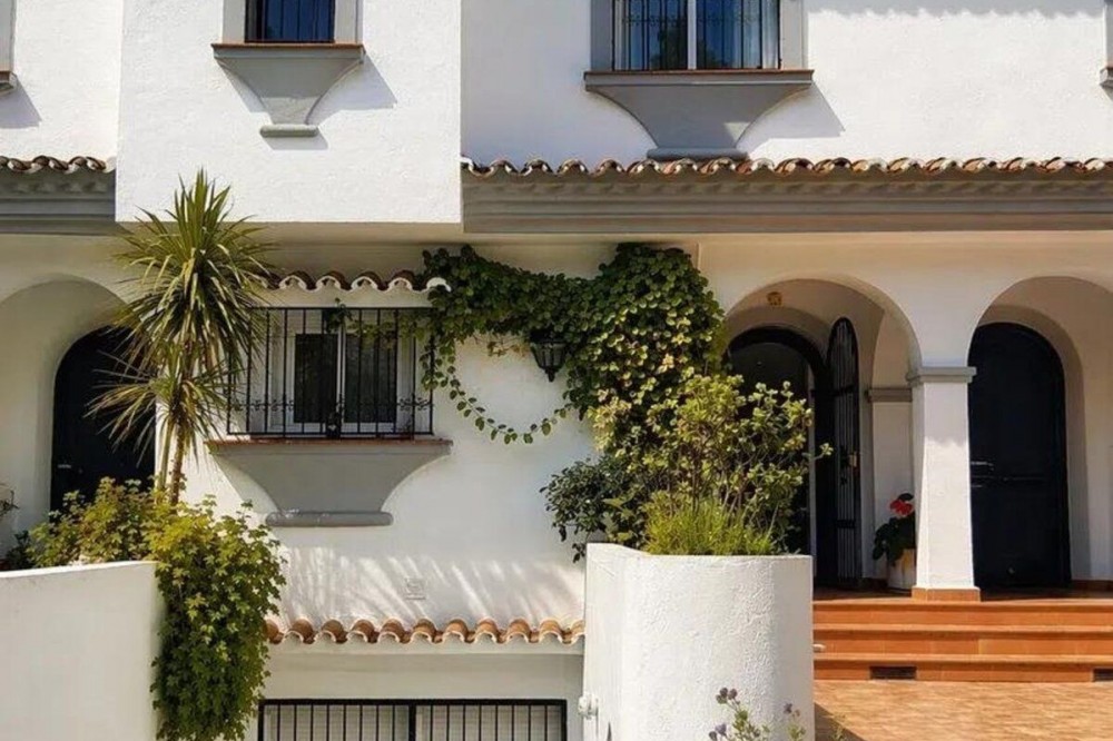 - Exclusive townhouse in Cabopino – just steps from the sea and the marina Located in one of Cabopino’s most desirable areas, this elegant townhouse is situated in the renowned Villas del Puerto development, a private and exclusive residential complex comprising just 24 homes, on the second line from the beach. The property stands out for its spaciousness, functional layout, and excellent location, just 300 meters from the beach and 400 meters from the Cabopino Marina, surrounded by restaurants, amenities, and a natural setting of pine forests. Spread over three floors, the home offers: On the main floor, a bright living room with direct access to the terrace, a separate kitchen, and a guest bathroom, creating an ideal space for daily living and entertaining. The upper floor features two bedrooms, both with en-suite bathrooms, as well as a private terrace that provides light and privacy. On the lower floor are three additional bedrooms, two full bathrooms, a pantry area, and a laundry room, offering ample space for families or guests. Outside, the property features a pleasant 60 m² private garden, a porch, and access to the common areas with a community pool and well-maintained gardens, with direct access to the beach. Notable features include hot/cold air conditioning, marble and tile flooring, and private parking. An ideal property for both a primary residence and a vacation home, located in one of the most sought-after areas on the Costa del Sol.