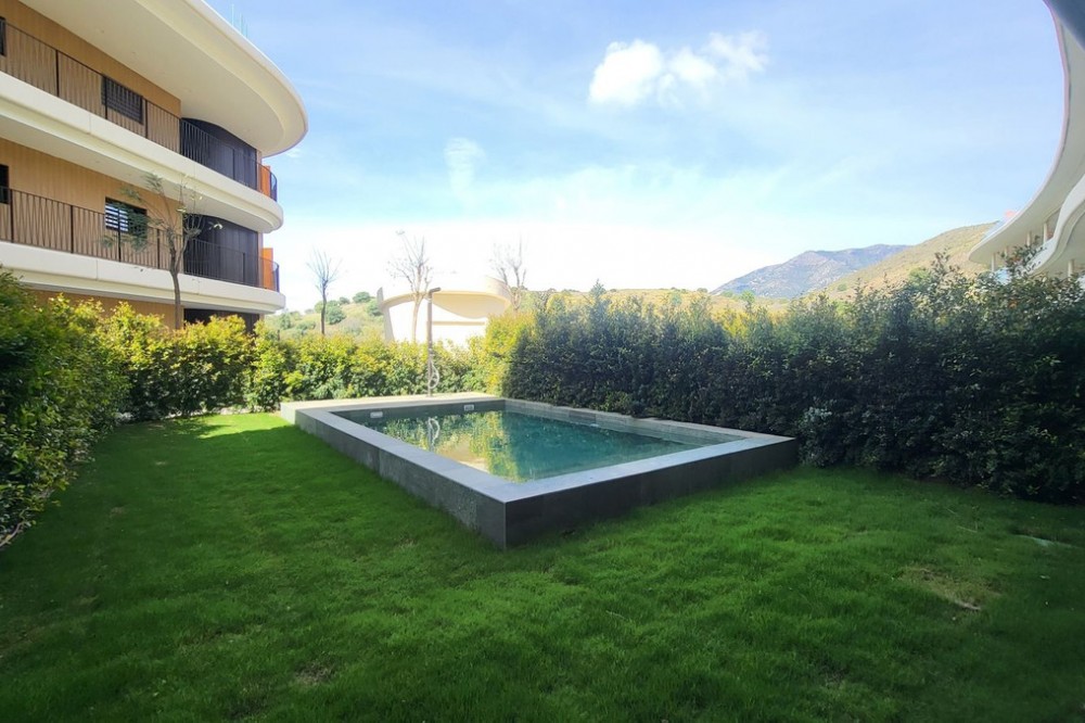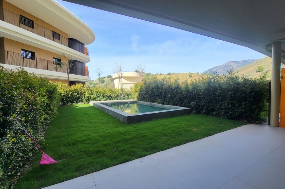 - Ground Floor Apartment, Higueron, Costa del Sol. 2 Bedrooms, 2 Bathrooms, Built 89 m², Terrace 22 m², Garden/Plot 46 m². Setting : Close To Sea, Urbanisation. Orientation : West. Condition : Excellent, New Construction. Pool : Communal, Private. Climate Control : Air Conditioning. Views : Garden, Pool. Features : Covered Terrace, Lift, Fitted Wardrobes, Private Terrace, Storage Room, Utility Room, Ensuite Bathroom, Access for people with reduced mobility, Double Glazing, Domotics. Furniture : Not Furnished. Kitchen : Fully Fitted. Garden : Communal, Private. Security : Gated Complex, Entry Phone, Alarm System. Parking : Underground, More Than One. Utilities : Electricity. Category : Luxury, Resale.