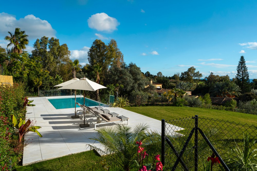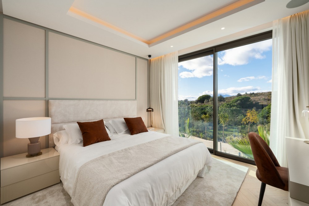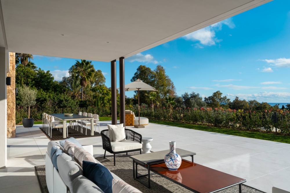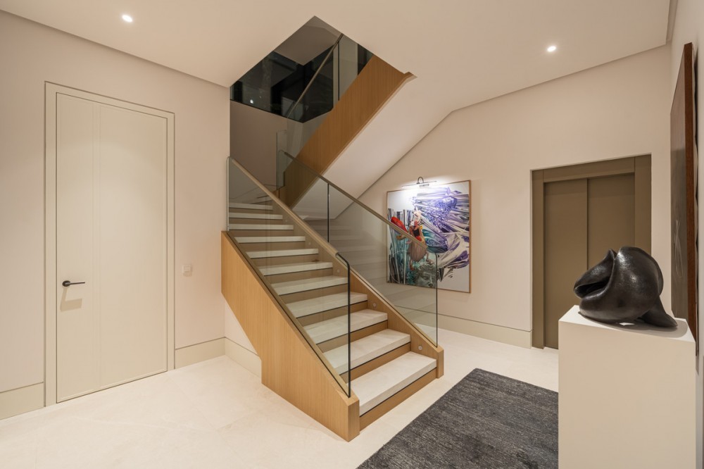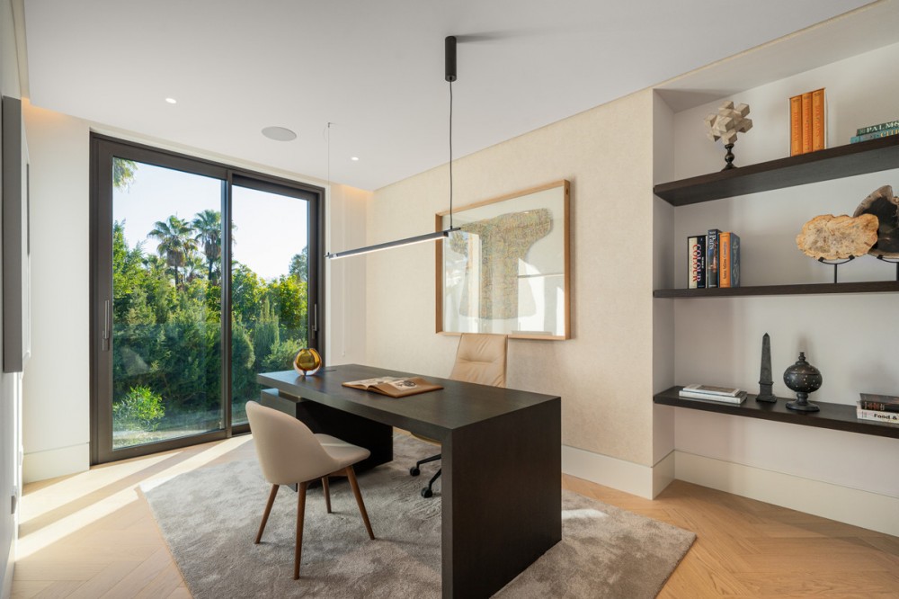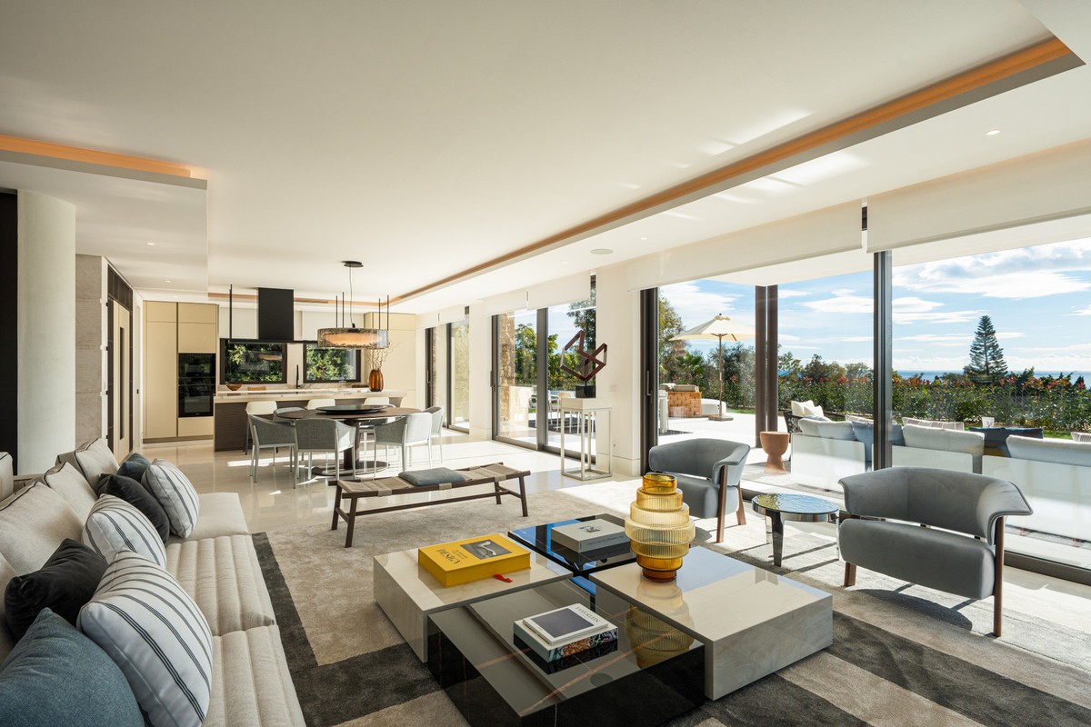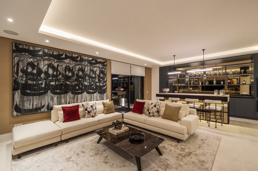 - This exceptional luxury villa in Marbella Hill Club seamlessly blends refined elegance with effortless comfort, offering an exclusive lifestyle in one of Marbella’s most prestigious enclaves. The bespoke interiors by Pedro Peña are uniquely tailored to this residence, creating a sophisticated yet welcoming atmosphere that feels both timeless and distinctive. A calming neutral palette, enriched with natural materials such as wood and marble, enhances the sense of understated luxury, while meticulous attention to detail elevates every space. The open-plan living areas are thoughtfully designed to create a harmonious flow while maintaining defined zones for relaxation and entertainment. The living room invites comfort and tranquillity, complemented by curated artwork and bespoke finishes that add character and individuality. The contemporary kitchen is both stylish and functional, equipped with state-of-the-art appliances and a wine cooler, making it ideal for both everyday living and elegant entertaining. Each bedroom is beautifully appointed with premium materials and refined décor, offering a serene and luxurious retreat. The bathrooms feature double vanities, walk-in showers, and freestanding bathtubs, delivering a spa-like experience. This remarkable property also includes an exclusive bar and entertainment room, a fully equipped gym, a Turkish bath, and an indoor pool, creating a private wellness and leisure sanctuary. Set on a generous plot, the villa offers extensive outdoor areas designed to enjoy the Mediterranean lifestyle, including multiple seating areas, a private swimming pool, and breathtaking sea views. The impressive solarium features an outdoor kitchenette and additional space for relaxation and entertainment. Ideally located near the Marbella Golden Mile, this outstanding villa represents a rare opportunity to own a truly bespoke luxury residence that perfectly balances sophistication, comfort, and prime location.