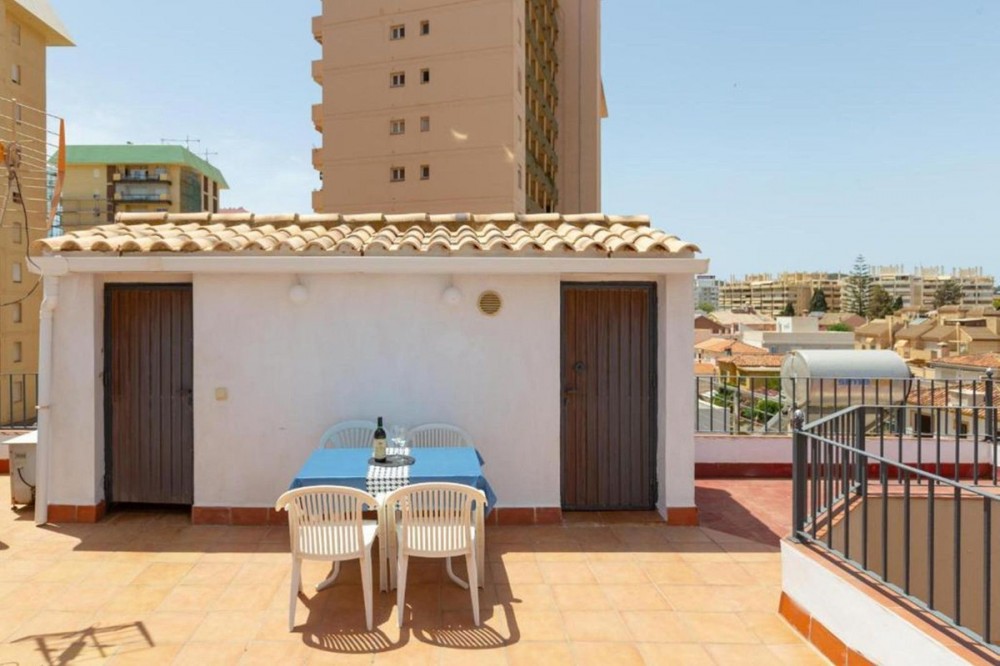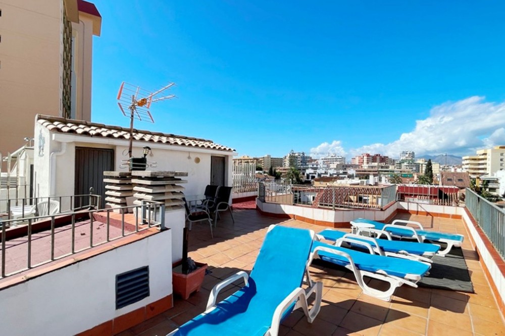 - Penthouse Duplex FrontLine Beach with valid touristic license – Calle Marina Nacional, Fuengirola Discover this magnificent penthouse in Fuengirola, located in one of the most desirable areas of the Costa del Sol, just steps from the sea and surrounded by all amenities: restaurants, shops, transport, and leisure facilities. With an unbeatable location and a valid tourist license, this property represents an excellent opportunity both as a permanent residence and for generating high rental income. The 87 m² apartment features a bright living-dining room, a fully equipped kitchen, three bedrooms (one with an en-suite bathroom), and two open terraces plus a spacious solarium, totaling 87 m² of private outdoor space. These open spaces are ideal for relaxing in the sun, hosting barbecues, or simply enjoying the breathtaking views of the sea and the urban landscape of Fuengirola. With capacity to accommodate up to 7 people, this penthouse offers the perfect balance between comfort, location, and profitability. A unique property that combines Mediterranean charm with all the advantages of a safe investment.