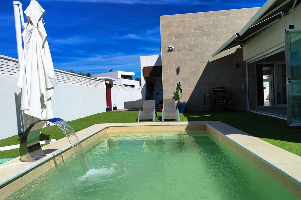 - VILLA FOR SALE IN MIRADOR DE LA SIERREZUELA | COSTA DEL SOL IMMEDIATE DELIVERY – FULLY FURNISHED AND READY TO MOVE IN FROM DAY ONE. BUILT IN 2022 The property also features a full CCTV surveillance system throughout, providing an extra level of security and control. Mirador de la Sierrezuela is emerging as one of the most attractive and high-potential residential areas on the Costa del Sol. Located between the mountains and the sea, it offers the perfect balance of tranquility, privacy, and proximity to all essential services, making it ideal as a primary residence, second home, or investment. It is a well-established urbanization, mainly composed of detached villas, surrounded by nature and open views, just minutes from Fuengirola. In addition, it has recently benefited from infrastructure upgrades such as adapted sidewalks, green areas, children’s playgrounds, separate drainage systems, and fiber optic internet, reinforcing its long-term value. THE PROPERTY Within this setting, we present this single-level detached villa, designed to offer a comfortable, functional, and accessible lifestyle. The property features three spacious bedrooms, including a master bedroom with a walk-in wardrobe, and two full bathrooms (one en-suite and one with a bathtub). The large living room stands out for its natural light, while the kitchen is generously sized and includes a separate laundry and storage area. The layout provides excellent flow between the living room, kitchen, and outdoor pool area, enhancing both daily living and entertaining. The property also includes high-quality built-in wardrobes in both bedrooms and common areas. As an added value, the home includes an outdoor bathroom for pool use and guests, an outdoor shower, and a functional rear patio for maintenance and laundry. All of this in a barrier-free home, also ideal for people with reduced mobility. OUTDOOR AREA AND PLOT The property is set on a private corner plot with a fully open frontage and no possibility of future construction, ensuring privacy and permanent open views. The outdoor space has been designed for both enjoyment and low maintenance, featuring a private saltwater swimming pool with massage jets, a decorative waterfall, and spacious areas for leisure and gatherings. There is also a side area prepared for a terrace or outdoor dining space. The property includes two independent vehicle access points and a large parking area. ADDITIONAL SPACE The property also offers an independent area with potential to be converted into a guest apartment, providing multiple possibilities depending on the future owner’s needs. CONSTRUCTION QUALITY AND EFFICIENCY One of the key highlights of this property is its construction system and high level of energy efficiency. It has been fully built using the Baupanel system, ensuring excellent thermal and acoustic insulation. The property holds an A energy rating and is equipped with photovoltaic solar panels for self-consumption, as well as solar thermal panels for hot water. Additional features enhancing everyday comfort include high-end exterior carpentry with thermal break (RPT), double thermal and acoustic glazing, a whole-house water filtration system, and reverse osmosis in the kitchen. MOBILITY AND TECHNOLOGY The property is prepared for current and future needs, including an electric vehicle charging point and an additional charging point for an electric motorcycle. URBANIZATION The community offers a safe and family-friendly environment, featuring a private children’s playground for residents, a video surveillance system, and night-time security control. LLOCATION Located just minutes from Fuengirola, with quick access to schools, supermarkets, shopping areas, and all essential services, as well as excellent connections to Málaga and its international airport. A property that combines location, privacy, efficiency, and construction quality, designed for those seeking more than just a home: a lifestyle.