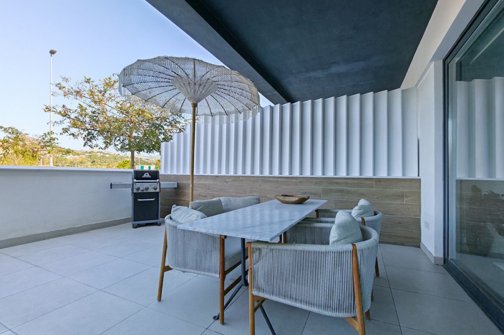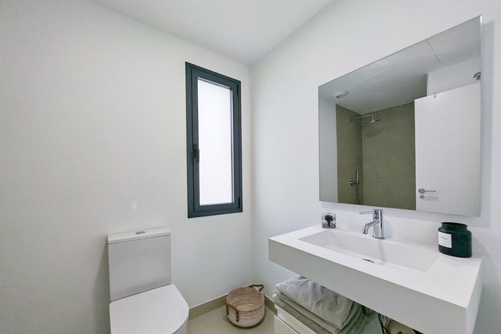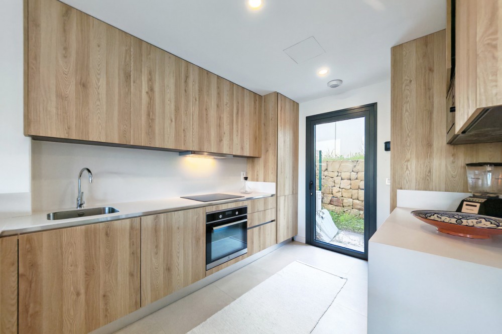 - Semi Detached Villa for sale in , Estepona with 3 bedrooms, 2 bathrooms, 1 on suite bathroom, 1 toilet and with orientation south/west, with communal swimming pool, private garage (1 parking spaces) and private garden. Regarding property dimensions, it has 123.65 m² built, 206.84 m² plot, 101.45 m² interior and 44 m² terrace. Has the following facilities transport near, air conditioning, fully fitted kitchen, guest room, security entrance, double glazing, video entrance, brand new, guest toilet, private terrace, living room, country view, mountain view, underfloor heating (throughout), security shutters, covered terrace, electric blinds, fitted wardrobes, garden view, close to children playground, close to golf, uncovered terrace, glass doors, open plan kitchen, balcony, optional furniture, ceiling cooling system, close to shops, close to schools, inside golf resort and pets allowed.