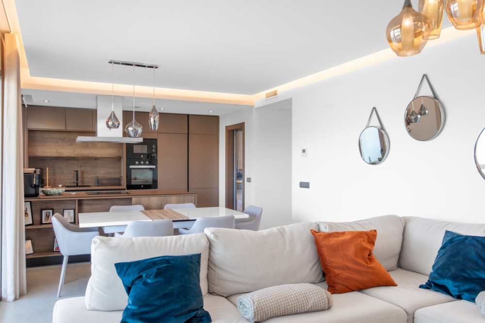 - This elegant first‑floor apartment in a sought‑after development offers a blend of modern comfort, open‑plan living, and panoramic views that capture the essence of La Cala Resort living. Designed with space, light, and lifestyle in mind, the home features a generous open‑concept layout that seamlessly connects the kitchen, dining, and living areas, all flowing onto a large private terrace. With three well‑proportioned bedrooms, including a master suite, the property is ideal for both full‑time living and luxury holiday escapes. Floor‑to‑ceiling windows flood the interior with natural light, while the elevated first‑floor position provides sweeping views over the golf course, surrounding hills, and the beautifully landscaped community gardens. The apartment is finished to a high standard, with contemporary materials, a fully equipped modern kitchen, and energy‑efficient features throughout. Residents enjoy access to the resort’s world‑class facilities, including championship golf courses, a spa, restaurants, and 24‑hour security. A private parking space and storage room complete this exceptional property.