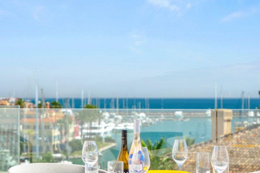 - Welcome to your future dream home by the sea within the port of Sotogrande! Nestled within the prestigous urbanization PIER SOTOGRANDE, this luxury corner duplex penthouse redifines luxury coastal living. Its privileged seafront location gives breathtaking panoramic views over the port of Sotogrande, Gibraltar and the African coast. The scenery is magnificent throughout the day and offers breathtaking sunrises. As you step inside, prepare to be captivated by the luxury qualities. The spacious living room leads to a fantastic south facing terrace with spectacular views to the port and sea. On the same level you will find 3 bedrooms and 2 bathrooms (one en suite) and the luxury kitchen with an integrated wine cooler ensures culinary excellence and functionality. A modern inside staircase brings you up to the spacious roof terrace, where you will feel like being on a cruise ship. Impressive views of the marina and the sea are waiting for you. This luxury duplex corner penthouse represents a unique opportunity for those looking for an exclusive modern residence in one of the most desired destinations on the Costa del Sol. Includes two parking spaces and a storage room.
