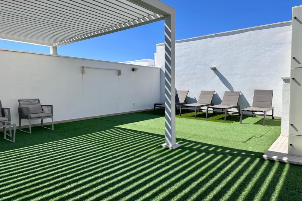 - MAGNIFICENT PENTHOUSE - DUPLEX IN: SAN PEDRO DE ALCANTARA - BEACH SIDE. Just a 10-minute walk to the sea. (MARBELLA) Super modern apartment, finished to the highest standards and with an unbeatable location in the beach area of San Pedro de Alcántara. Situated just a 10-minute walk from the sea and the center of San Pedro de Alcántara. It offers the perfect combination of tranquility, comfort, and Mediterranean lifestyle. Surrounded by restaurants, a gym, supermarkets, a paddle tennis club, hairdressers... all within easy reach, without needing a car. The property stands out for its contemporary design, clean lines, and a layout designed to maximize natural light. Every detail has been carefully selected to convey modernity, class, and comfort. Entrance hall, connected to the living room, spacious, clean, bright, square, and with a fully equipped open-plan kitchen (separate laundry area). It opens onto a sunny, spacious terrace with views of the beautiful Nueva Alcantara area and all its charms. 3 spacious bedrooms, all with large wardrobes, and 2 fantastic full bathrooms. From the terrace, outside and above, there is a magnificent pergola-covered terrace (approximately 81 m2) with partial sea and mountain views... perfect for enjoying a chill-out area and BBQ. An ideal property, both for year-round living and for enjoying holidays in a privileged setting. The apartment includes an underground parking space and a storage room. A magnificent and very private communal swimming pool, for the exclusive use of the owners of the complex. Don't hesitate to call us to arrange a visit, because like all good things in life... it surprises! We'd be delighted to assist you!