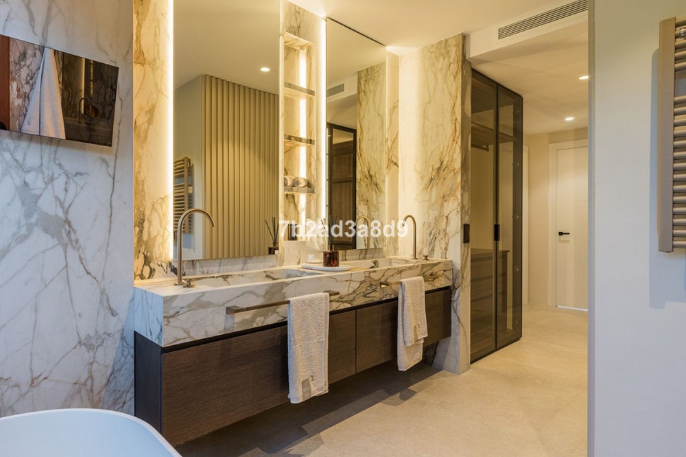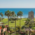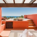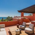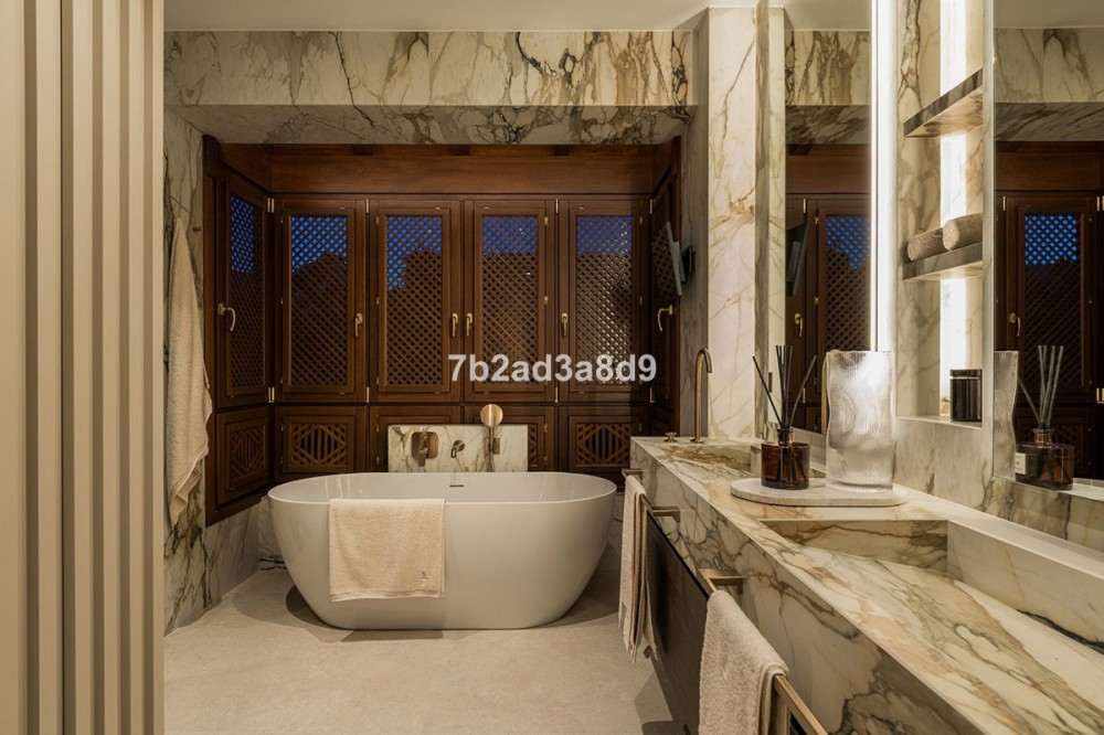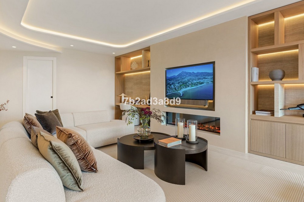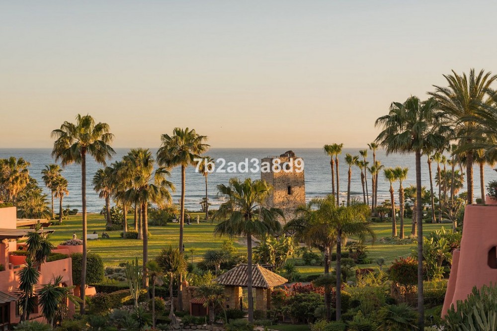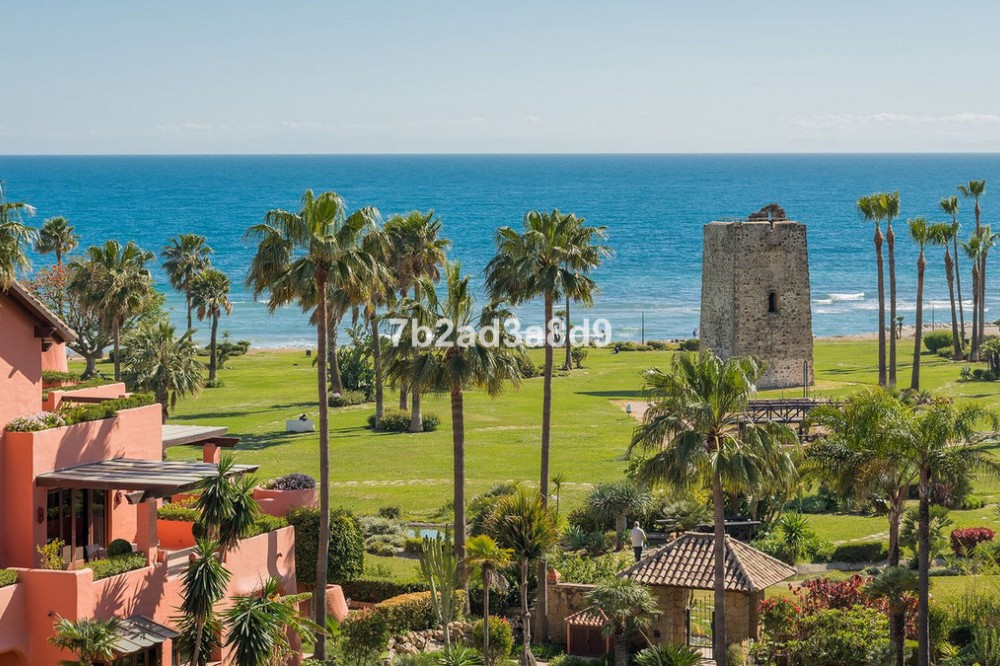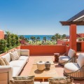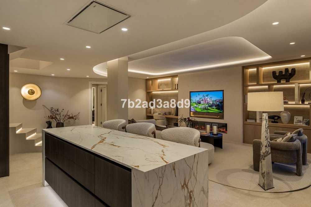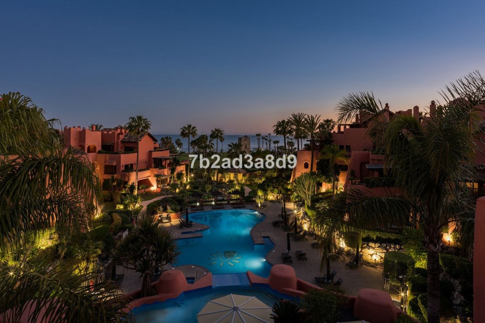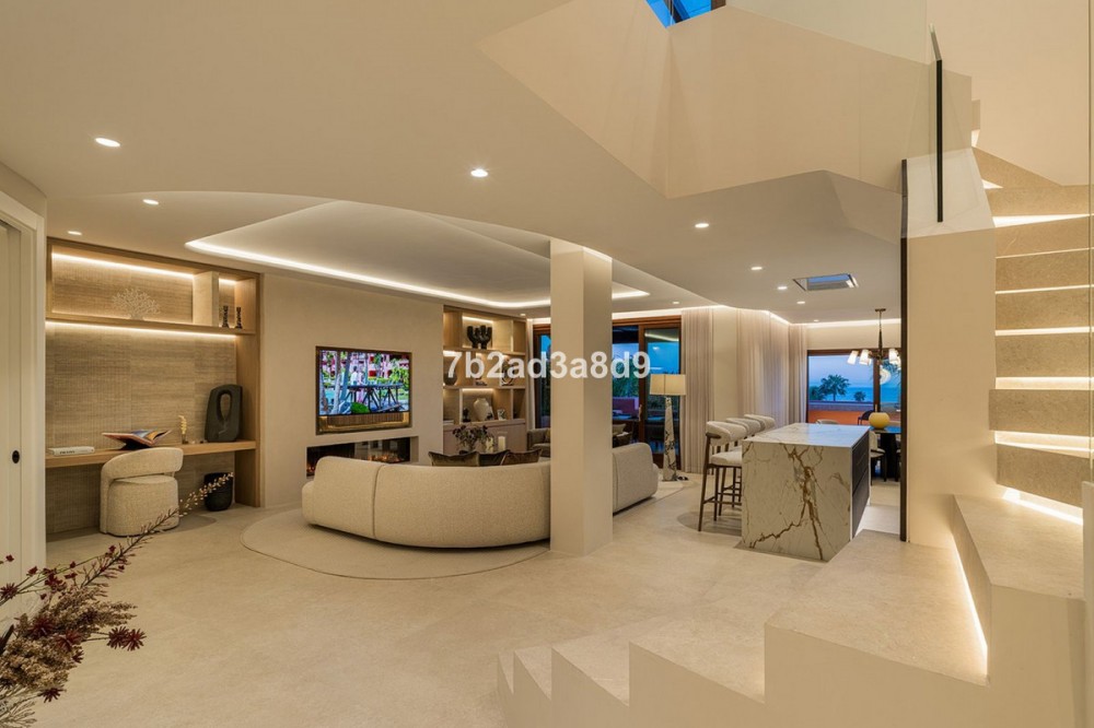 - Presenting Penthouse Bermeja, an elegant andfully renovated penthouse in the beachfront community of Torre Bermeja, Estepona. Located within the prestigious beachfront enclave of Torre Bermeja on Estepona’s coveted New Golden Mile, this remarkable duplex penthouse seamlessly fuses timeless Andalusian architecture with elevated contemporary design. A rare opportunity to own a luxury home in one of the Costa del Sol’s most desirable gated communities, this property is a masterclass in understated elegance and modern comfort. Spanning over 200 square metres of interior space, with an additional 125 square metres of private terraces, the residence is meticulously curated to offer both sophistication and serenity. The open-plan living area is flooded with natural light and anchored by an electric fireplace that adds warmth and character. Custom-built wardrobes, a designer kitchen fitted with premium appliances including a Thermomix and wine fridge, and a Bang & Olufsen integrated sound system all reflect the attention to detail that sets this home apart. The primary suite is a sanctuary of its own, featuring a luxurious walk-in closet, a free-standing bathtub, and direct access to the upper terrace. Step outside to experience the pinnacle of outdoor living: a secluded sun terrace furnished with Kettal pieces, complete with a private sauna and Jacuzzi—ideal for relaxing after a day spent on nearby beaches or world-class golf courses. Additional features include a dedicated laundry room, spacious guest bedrooms, and spa-inspired bathrooms that elevate everyday living. From morning coffee to evening soirees, every corner of this penthouse has been thoughtfully designed for those who demand style, space, and exclusivity. Torre Bermeja is renowned for its 24-hour security, lush tropical gardens, indoor and outdoor swimming pools, gym, and direct access to the promenade and sandy beach beyond. Just minutes from Puerto Banús, Estepona, and Marbella’s Golden Mile, the location offers easy access to fine dining, elite international schools, boutique shopping, and vibrant nightlife.