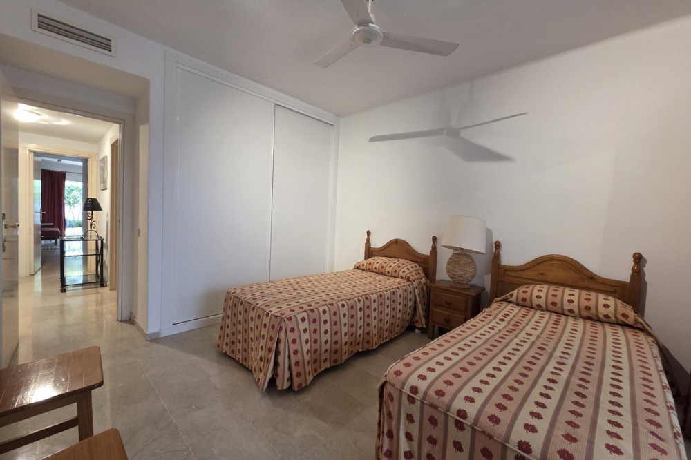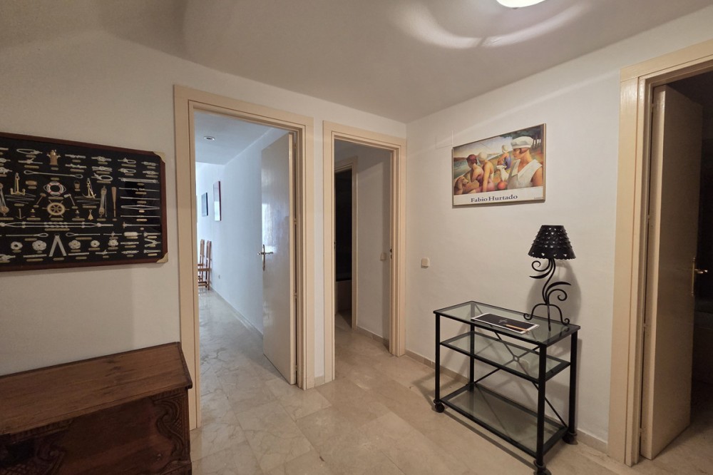- Located in the sought-after Birdie Club complex in Río Real, East Marbella, this impressive south-facing duplex offers generous living spaces, abundant natural light, and a versatile layout ideal for family living. Set within a well-maintained urbanisation featuring a swimming pool and children’s park, the property also benefits from direct street access with a security barrier, ensuring both convenience and peace of mind. The home is distributed over two levels and comprises four bedrooms, three bathrooms—two of them en-suite—and a guest toilet on the main floor. The main level is designed for day-to-day living and entertaining, accessed via a spacious terrace connected to the communal pool area. Upon entering, a large entrance hall creates a strong sense of space and could even be adapted into an additional room if desired. This floor also includes a bright and generously sized kitchen with a separate utility terrace, as well as an expansive living and dining area that opens onto a large south-facing terrace, perfect for enjoying the sun throughout the day. The lower level is dedicated to the sleeping quarters. The principal bedroom features an en-suite bathroom and direct access to a wide terrace with a charming private garden. A second bedroom also benefits from an en-suite bathroom and shares this outdoor space. Two additional bedrooms are positioned near a third bathroom and have access to a large covered interior terrace, a highly versatile area that can be adapted as a leisure space, entertainment room, or relaxation zone. Offering multiple outdoor areas, excellent orientation, and a flexible layout, this property is perfectly suited for families seeking comfort, space, and quality of life. Its location in Río Real places it just minutes from the beach, golf courses, Marbella centre, and a wide range of amenities, making it an outstanding choice for both permanent living and investment.