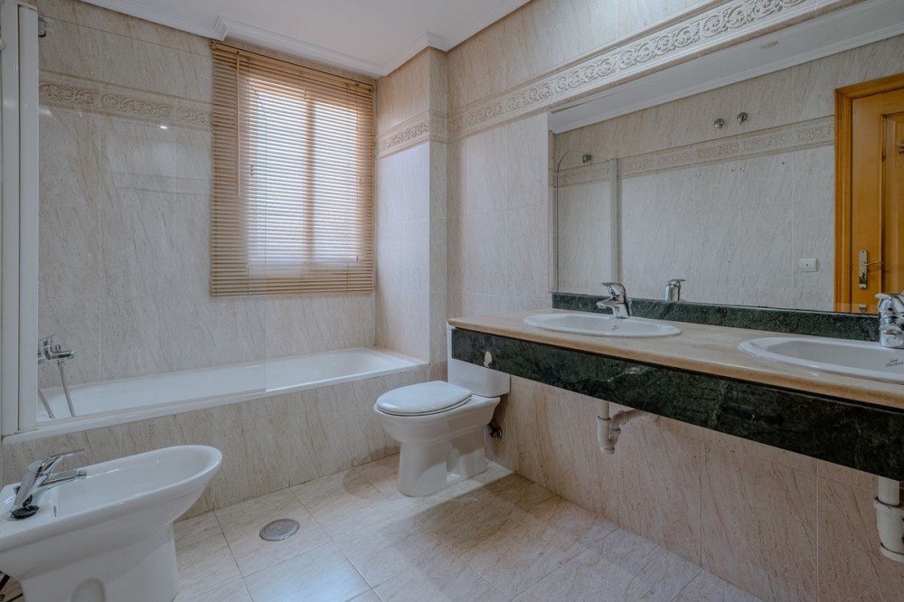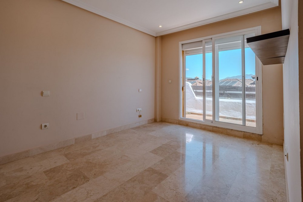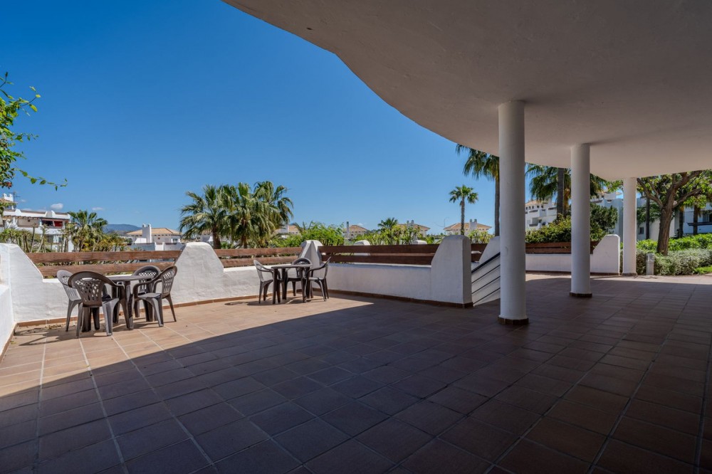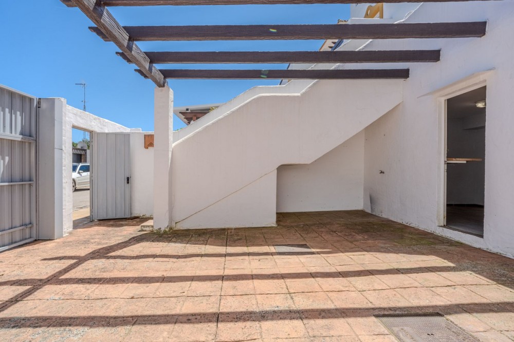 - This semi-detached house offers a wonderful combination of space, character, and potential, ideally located within a well-maintained and leafy urbanisation. The property features 3 bedrooms, 2 bathrooms and a guest toilet, distributed across a functional layout. A charming internal patio brings natural light into the home and adds a distinct Andalusian style and atmosphere, creating a warm and inviting feel throughout. One of the standout features is the 250 m² private garden, perfect for outdoor living, entertaining, or creating your own oasis. The storage room in the garage area brings the possibility of adding a 4th bedroom or office to the property. The home also benefits from two balconies: one overlooking the garden and communal areas, and another facing the street with beautiful sea views. In addition, there are two terraces offering 360º panoramic views of the sea and mountains, providing exceptional spaces to relax and enjoy the surroundings at any time of day. The property includes a fully equipped kitchen with the possibility to expand, offering flexibility to adapt the space to your needs. While the house is in good structural condition, it would benefit from some renovation, making it an excellent opportunity to personalise and add value. The urbanisation is known for its lush greenery, with palm trees and well-kept communal areas, including a swimming pool, gym, sauna, and events area. Ideally located within walking distance to Unicorn Racket Club, the American School, Atlas International School, as well as cafés and restaurants, this property offers both convenience and lifestyle. A fantastic opportunity for those seeking a home with character, outdoor space, and strong potential in a prime location.