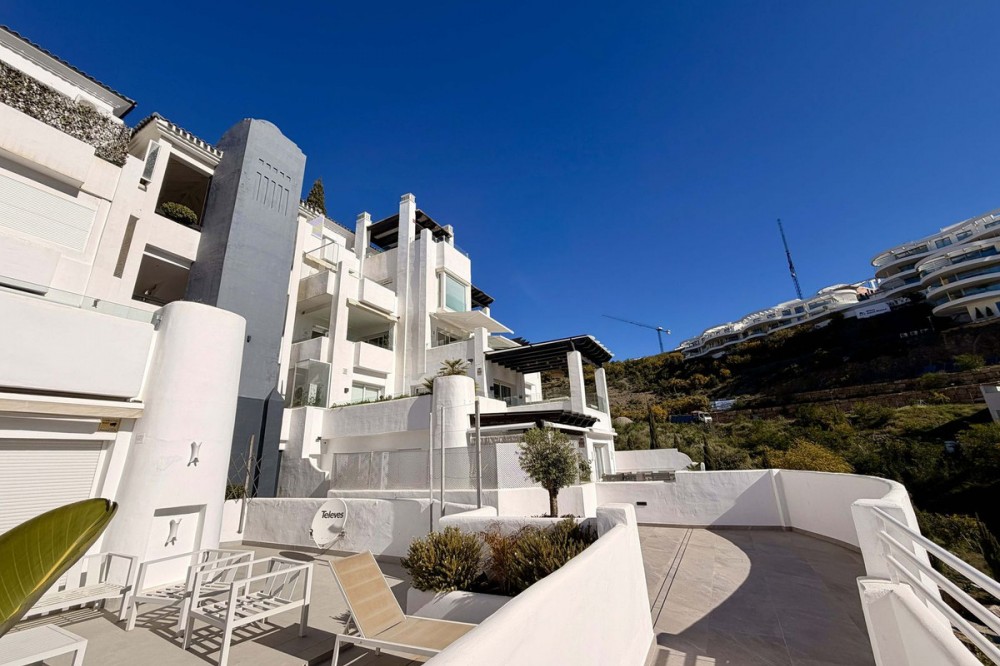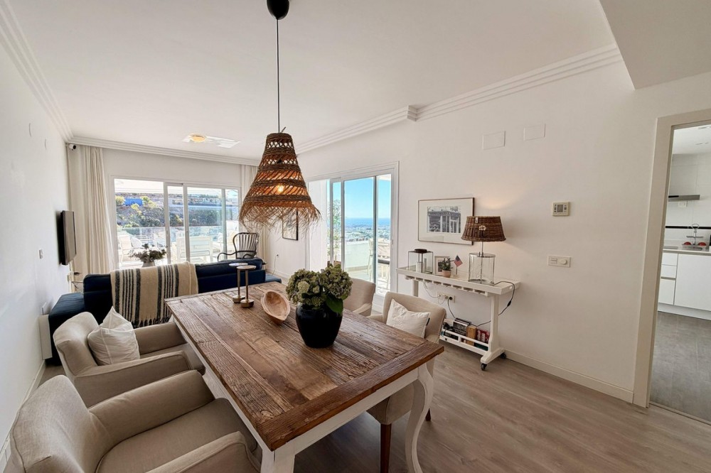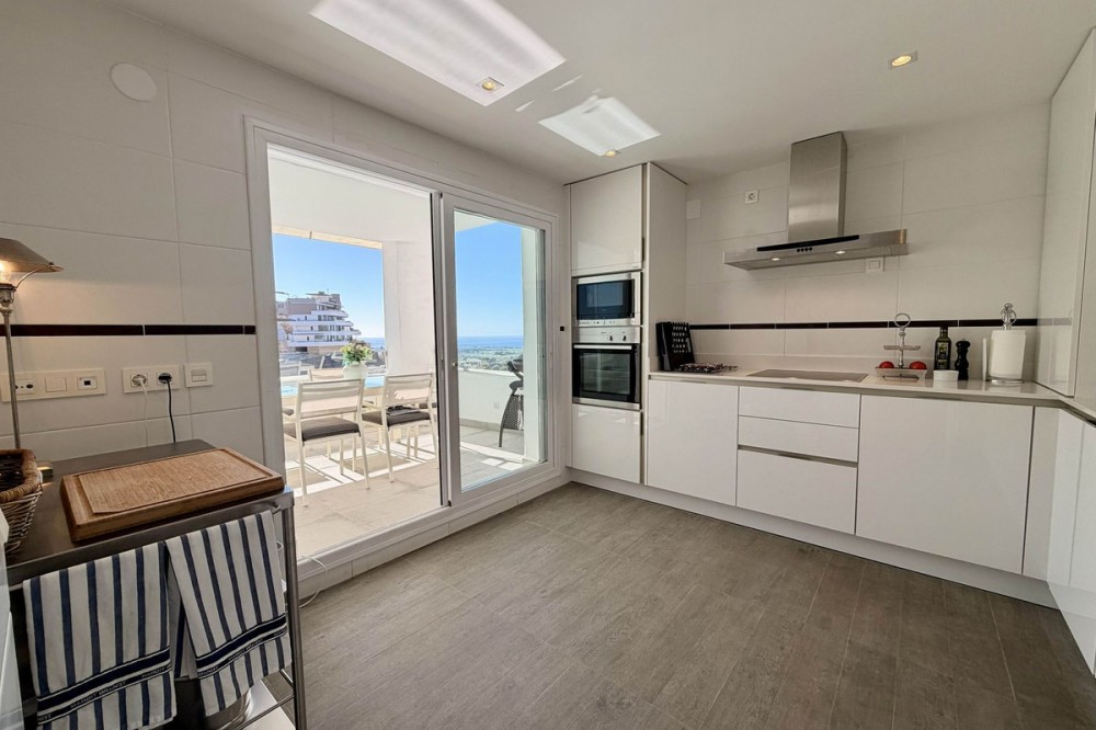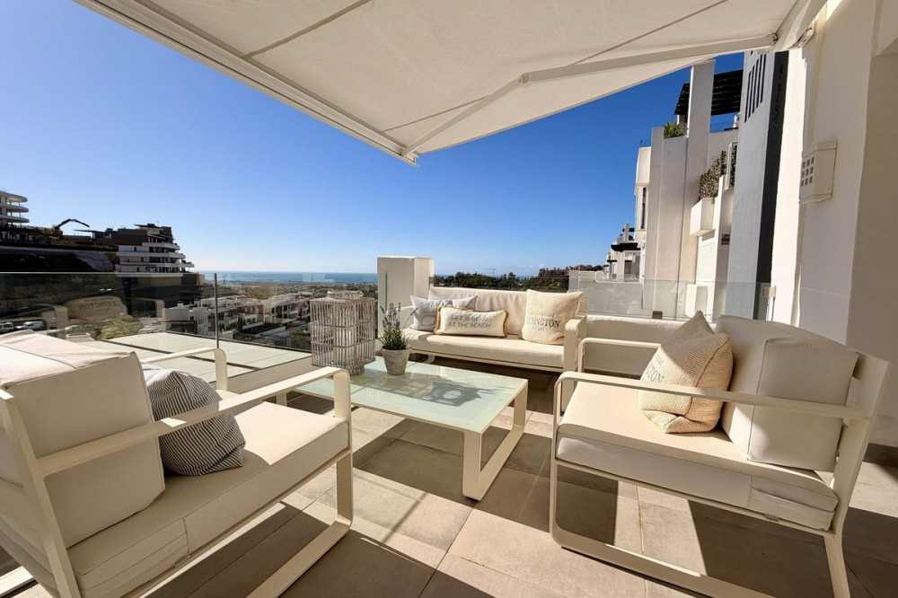 - Apartment in Valley Heights (Benahavis) with fantastic sea views This elegant 3-bedroom apartment for sale in Valley Heights, Benahavis, offers generous interior space and sweeping sea, golf and mountain views. Designed for comfortable year-round living, it combines quality materials, all with a contemporary touch. Complete with secure underground parking and a storeroom in a closed community above the golf valley. The apartment is laid out to prioritise comfort and space. A large living and dining area anchors the home, featuring a panoramic window and direct access to the terrace. High-quality finishes and built-in wardrobes, add a sense of solidity. The fully equipped kitchen provides ample storage and worktop space, while its layout suits both everyday cooking and entertaining, nicely connected to a corner terrace. Moreover, the three bedrooms benefit from generous proportions and their bathrooms, creating a flexible arrangement for family, guests or a dedicated home office. From the two terraces the views stretch across La Quinta Golf towards the sea. This outdoor space is well-sized for dining, lounging and enjoying the sunsets. Additionally, the elevation of Valley Heights means the outlook remains open and panoramic, giving a strong sense of light and landscape throughout the day. 3B/3B - Built: 144 sqm. - Terraces: 48 sqm.