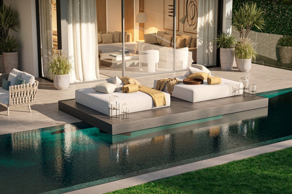 - New Development: Prices from €2,000,000 to €2,500,000. [Bedrooms: 4] [Bathrooms: 4] [Built size: 196m2 - 311m2]. Discover a collection of contemporary villas nestled in an exclusive gated community on the sun-kissed Costa del Sol. These exquisite residences are located in the heart of the New Golden Mile, offering a sophisticated living experience just moments away from pristine beaches, world-class golf courses, and the vibrant lifestyle of nearby Estepona and Marbella. Each home is designed with a focus on modern comfort and elegance, featuring flexible floor plans with up to five bedrooms to perfectly suit your individual needs. The architecture emphasizes high-end security and refined finishes, including private garages, spacious terraces, and the option for premium additions like a rooftop chill-out area with a jacuzzi. Set within lush landscapes and offering easy access to top international schools and local amenities, this development represents a rare opportunity for families seeking a secure and high-standard permanent or holiday home.