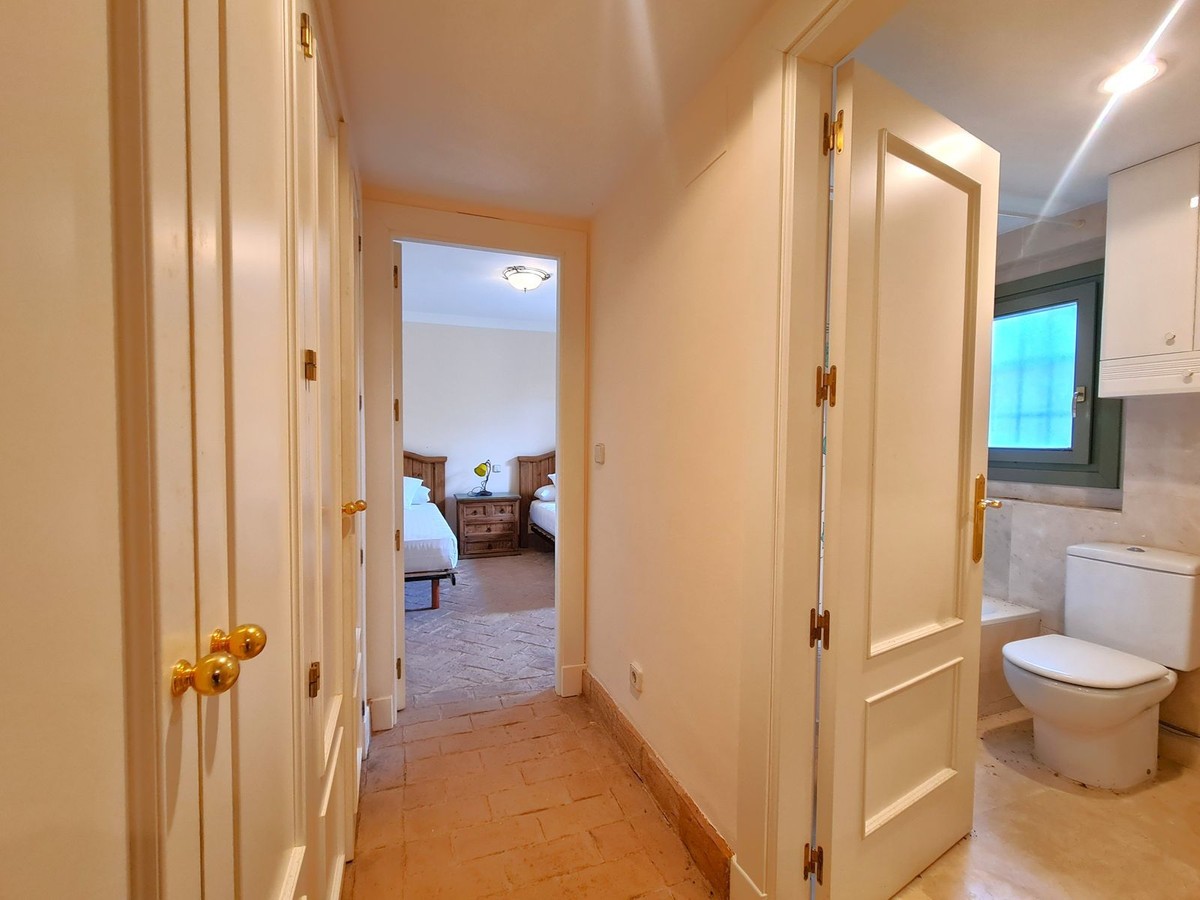 - MAGNIFICENT 3-BEDROOM TOWNHOUSE IN SOTOGRANDE MARINA Located in one of Sotogrande's most exclusive residential areas, this property is just a 2-minute walk from the beach, enjoys direct access to the marina's berths, and is close to restaurants, beach bars, and shops. Its location makes it attractive to water sports enthusiasts, tennis and padel players, and golfers. Just 20 km from Gibraltar Airport and 95 km from Malaga Airport, it is ideal as both a permanent residence and a second home. The property faces southwest and is distributed over two floors. On the ground floor, there is a spacious entrance hall leading to the large living-dining room with a fireplace and access to the large private garden. There is also a spacious, fully equipped kitchen with access to a porch that connects to the private garden. On the ground floor is one of the property's three bedrooms. This spacious bedroom features a large built-in wardrobe and an en-suite bathroom. Upstairs, there are two more large bedrooms with ample built-in wardrobes and spacious en-suite bathrooms. One of these bedrooms has direct access to the solarium. The property includes a large private parking area at the entrance for two cars and access to beautifully maintained communal gardens and a swimming pool. A UNIQUE OPPORTUNITY TO ENJOY THE LUXURY OF LIVING BY THE SEA! WE HIGHLY RECOMMEND A VIEWING.