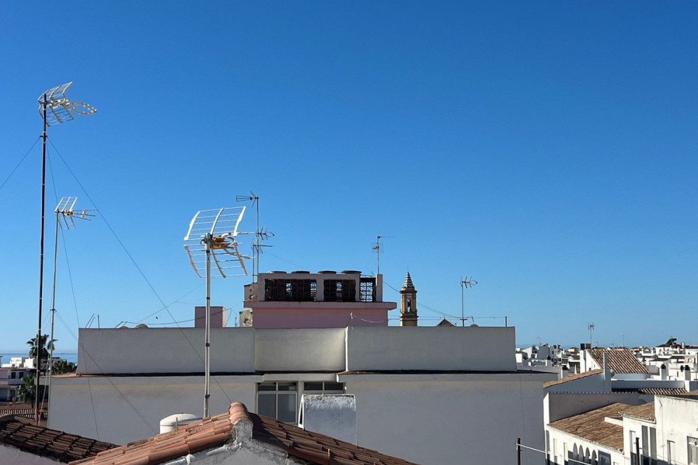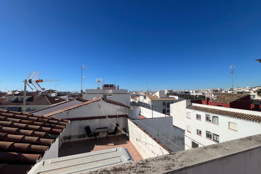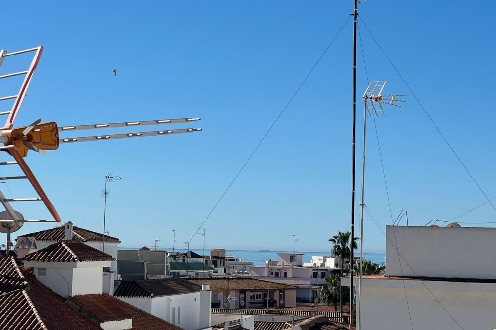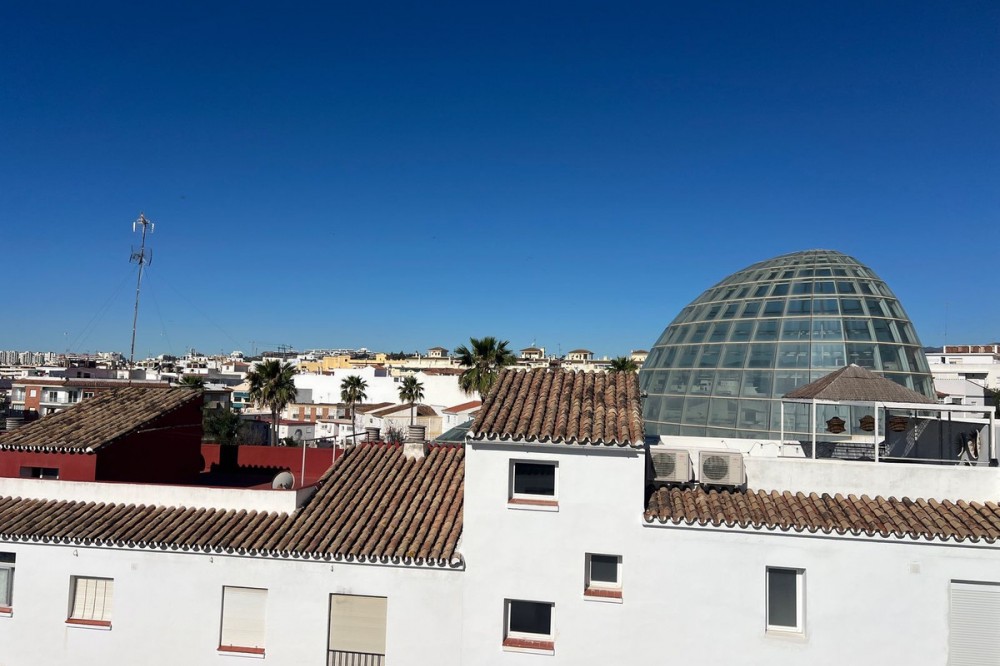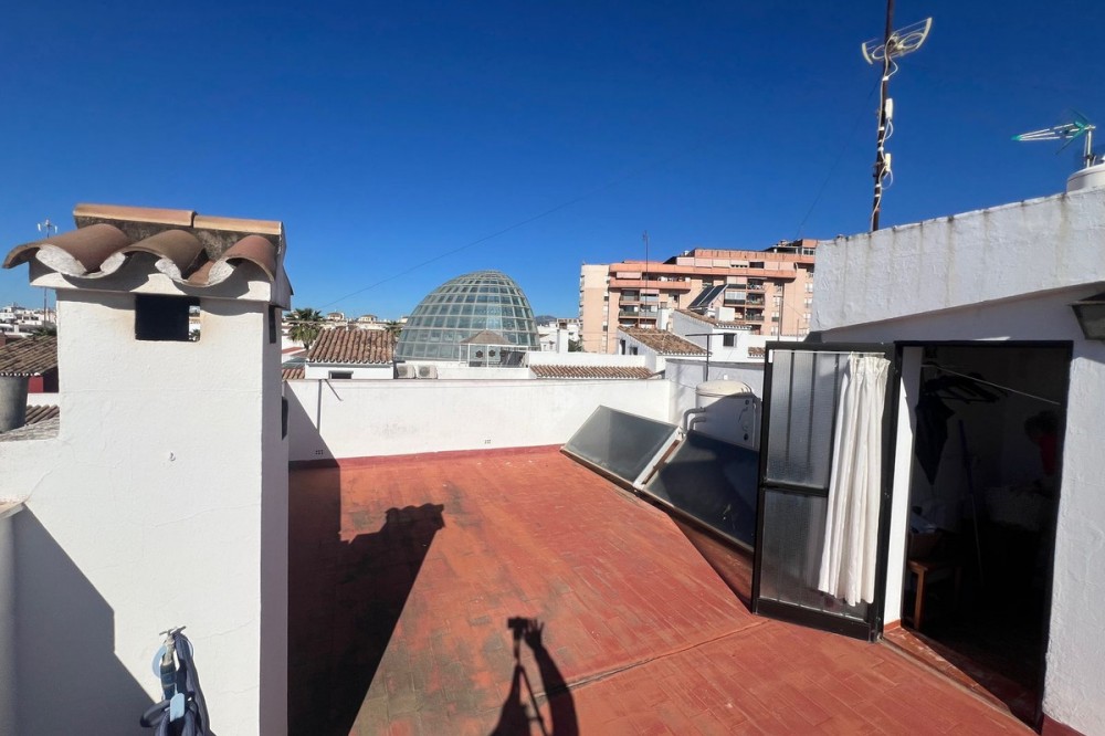 - A fabulous three-storey house in the centre of Estepona with a garage and a sun terrace The property is spread over three floors. The ground floor features a double-height living room, two separate rooms and a fully equipped kitchen with access to the garage for several vehicles, plus a bathroom. The first floor has three bedrooms and a full bathroom with two entrances. The top floor has three very spacious double bedrooms and a full bathroom, and on the roof terrace there are 360-degree views of the town and the orchid garden area; the property is ideal for conversion into holiday apartments or as a permanent home.