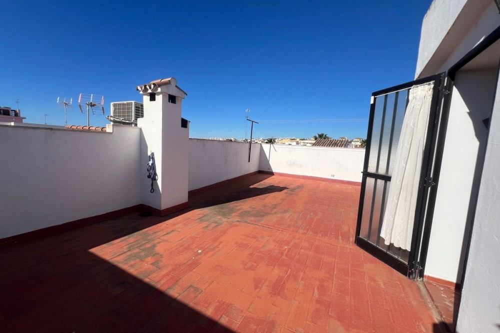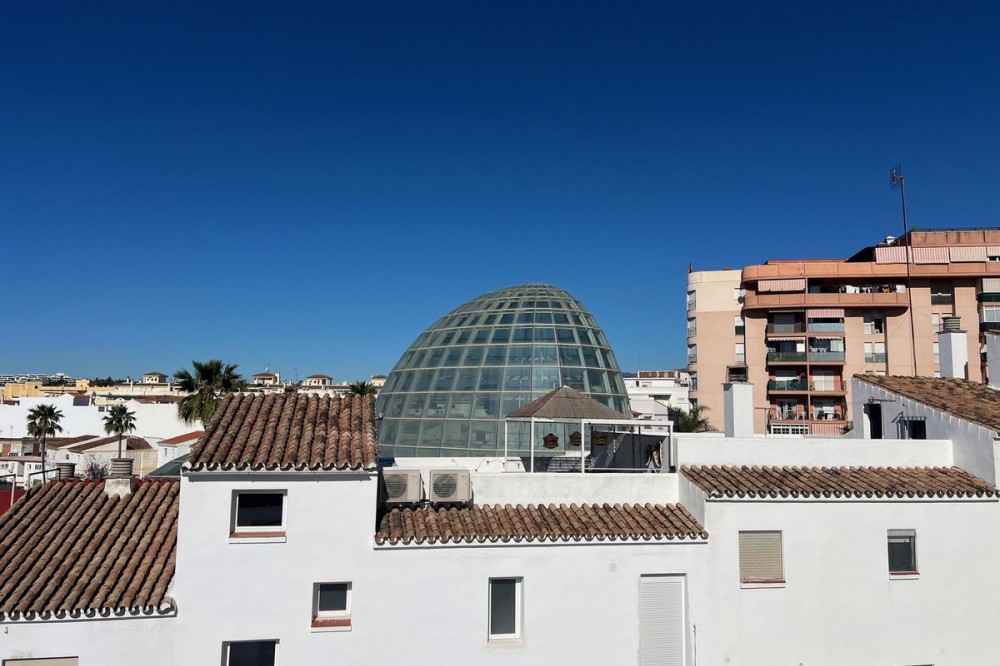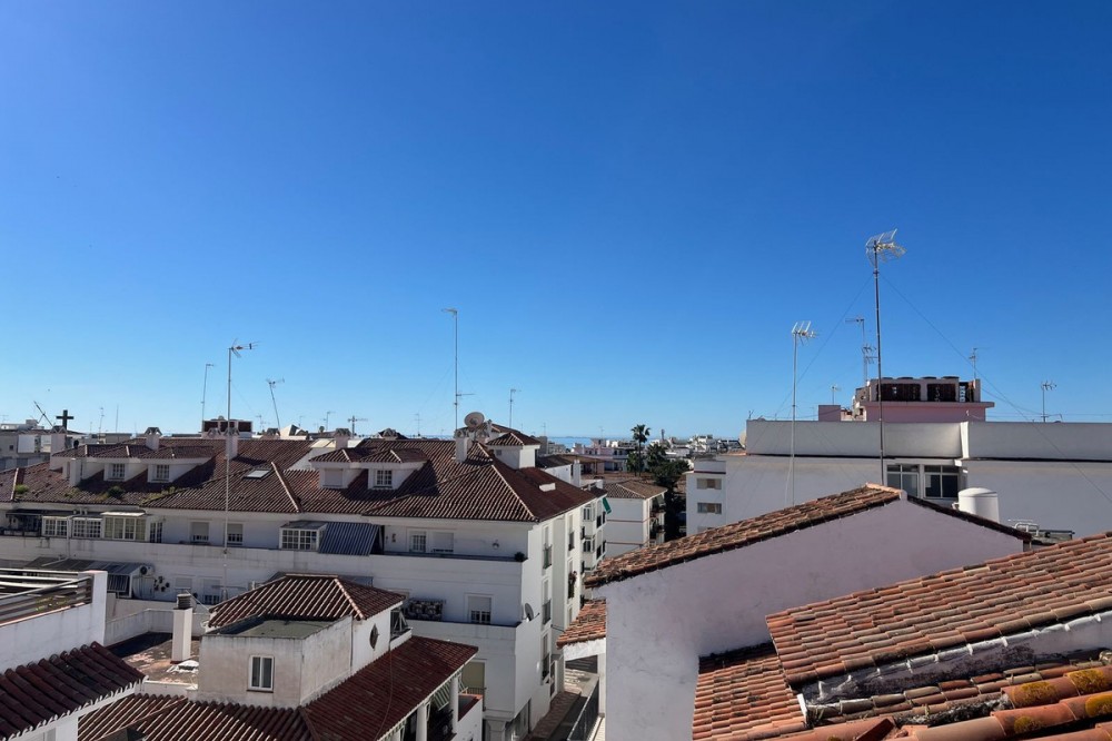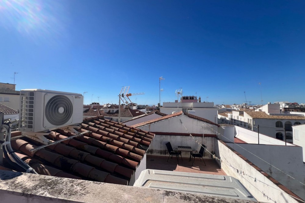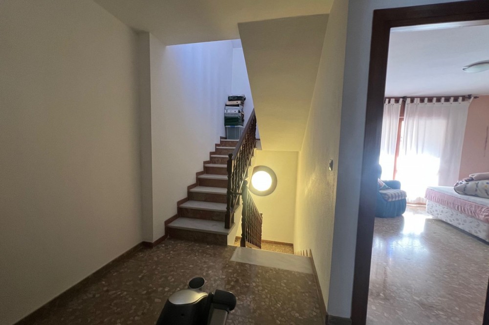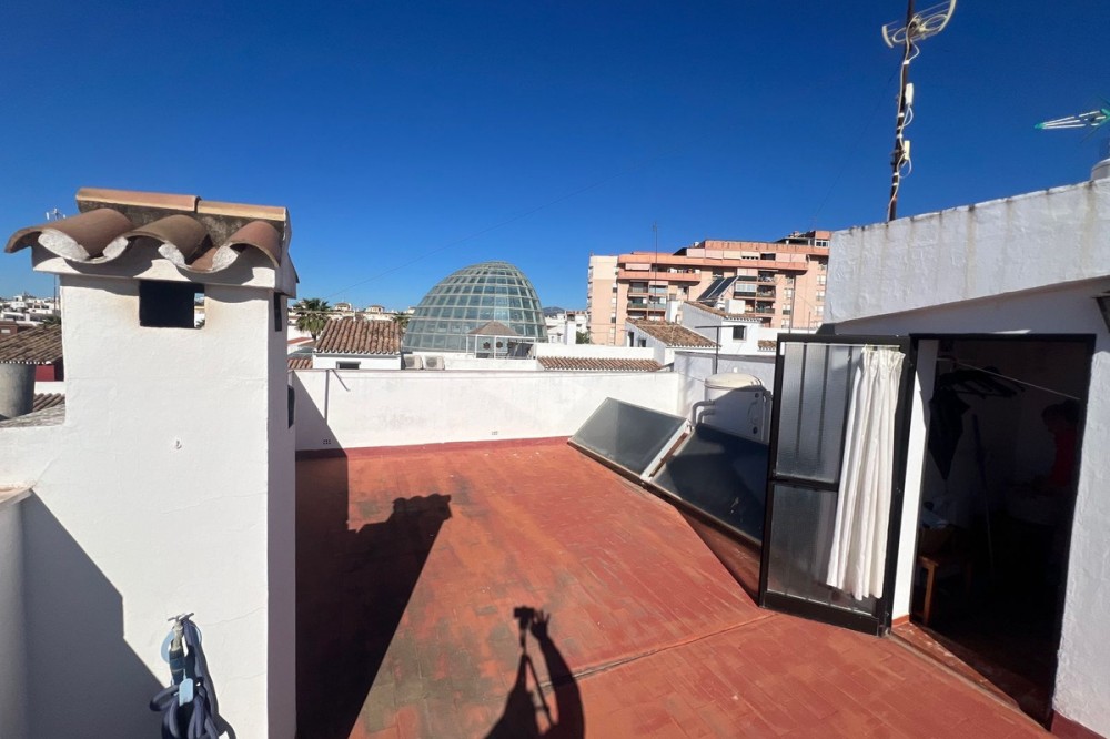 - A fabulous three-storey house in the centre of Estepona with a garage and a sun terrace The property is spread over three floors. The ground floor features a double-height living room, two separate rooms and a fully equipped kitchen with access to the garage for several vehicles, plus a bathroom. The first floor has three bedrooms and a full bathroom with two entrances. The top floor has three very spacious double bedrooms and a full bathroom, and on the roof terrace there are 360-degree views of the town and the orchid garden area; the property is ideal for conversion into holiday apartments or as a permanent home.