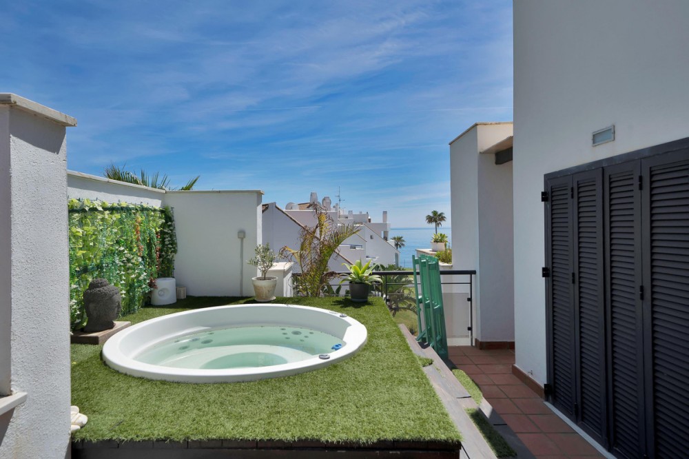 - Luxury beachfront penthouse with jacuzzi and solarium in Casares del Mar Elegant and contemporary beachfront penthouse located in the exclusive Casares del Mar development, where the sea becomes the true focal point of the home. Fully refurbished to a high standard with a sophisticated, modern design, this 2-bedroom property offers a unique living experience, combining comfort, style and an unbeatable frontline beach location. The apartment boasts approximately 80 sqm of built area and is complemented by exceptional outdoor spaces that enhance its exclusivity: a spacious main terrace of around 76 sqm featuring a jacuzzi and panoramic sea views, a stylish pergola area of approximately 44 sqm providing shade and character, and an impressive private solarium of about 33 sqm on the upper level, perfect for relaxing in complete privacy. Inside, the property features an open-plan designer kitchen seamlessly integrated into a bright living area, creating a fluid connection with the outdoors and maximising natural light and sea views. A truly special property for those seeking understated luxury, privacy, and the privilege of living right on the beachfront. Estimated costs payable by the purchaser: The purchase is subject to Property Transfer Tax (Impuesto de Transmisiones Patrimoniales – ITP) (Law 5/2021 on Transferred Taxes), with a general maximum rate of 7%. The taxable base shall be the higher of the declared purchase price and the cadastral reference value (Article 10 of the Consolidated Text of the ITP and AJD Law). Reduced rates may apply depending on the purchaser’s personal circumstances.The costs of the public deed and registration at the Land Registry are regulated by official tariff (Royal Decree 1426/1989 and Royal Decree 1427/1989, respectively). The estimated range is between €500 and €2,000 for notarial fees and between €250 and €1,500 for Land Registry fees.Administrative services (gestoría), if voluntarily appointed (fees are not regulated): estimated between €300 and €500.The municipal capital gains tax (IIVTNU) is payable by the seller (Article 104 of the Consolidated Text of the Local Finance Law).Total estimated cost for the purchase: 627.000€. This estimate is indicative and is provided in accordance with Article 20.1.c) of the Consolidated Text of the General Law for the Protection of Consumers and Users. The final amount will depend on the specific circumstances of the transaction and the purchaser.Estate agency fees are payable by the seller. ERE