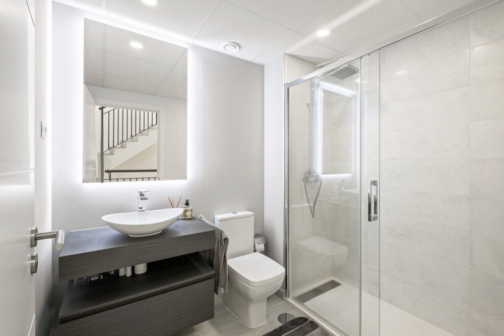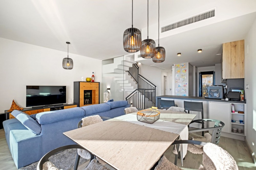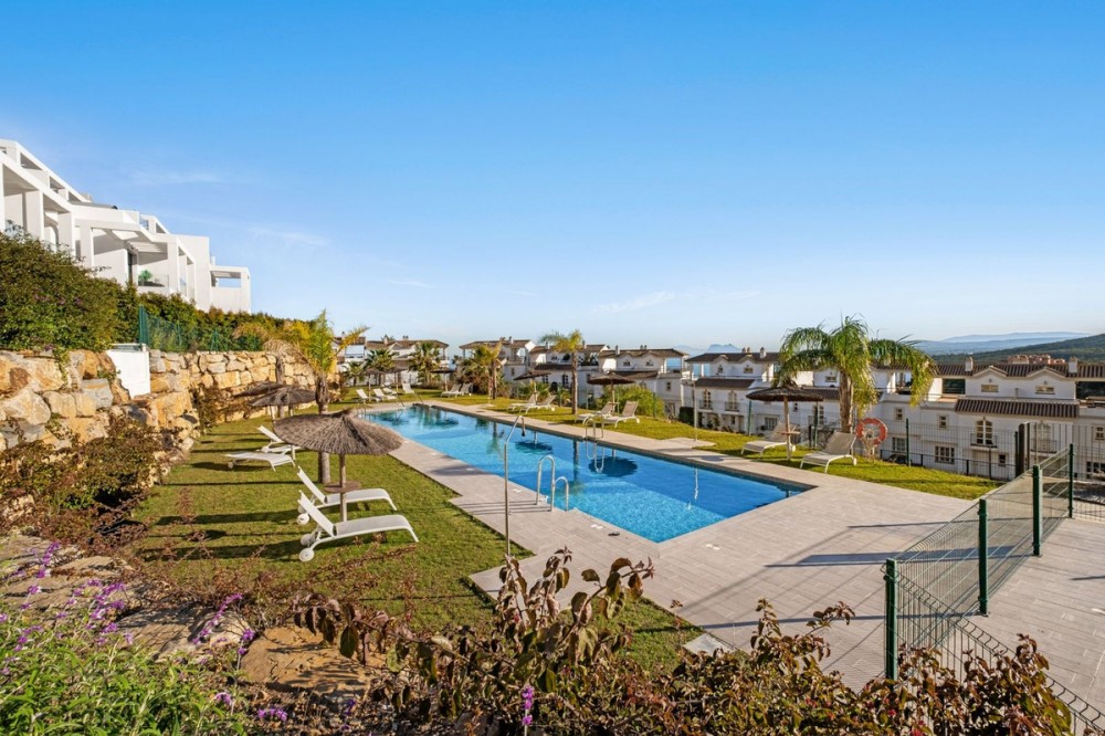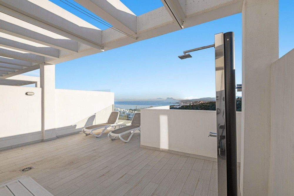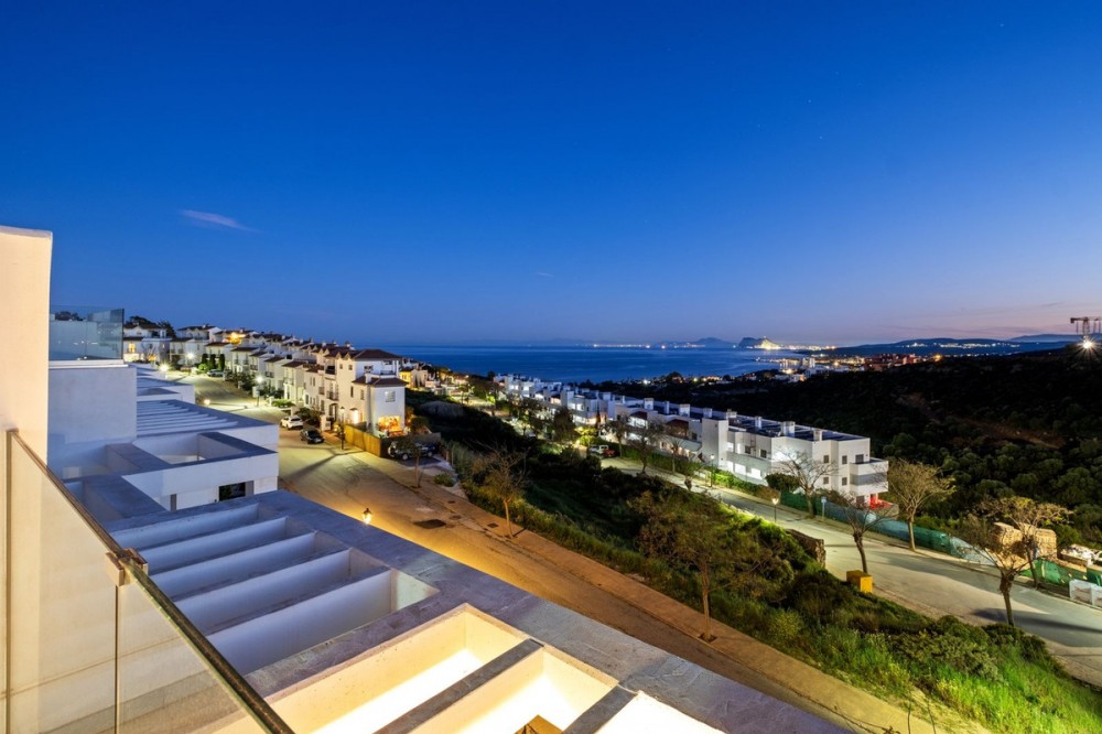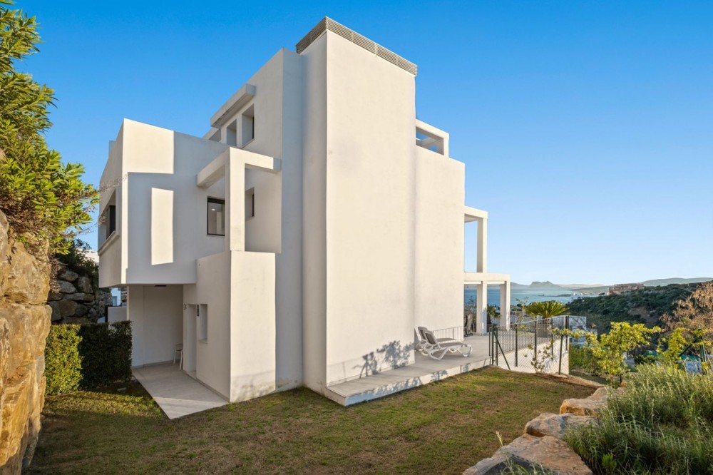 - This charming corner townhouse is located in Golden View I, a gated and well-maintained urbanisation offering excellent communal facilities, including a swimming pool, children’s playground, paddle tennis court and exterior restrooms. Ideally positioned close to the beaches, local amenities, and the marinas of La Duquesa and Sotogrande, this property is perfect both as a permanent residence and as a holiday home on the Costa del Sol. Thanks to its privileged corner position, the house enjoys enhanced privacy, abundant natural light, and a more spacious feel throughout. It also boasts fantastic open views of the Mediterranean Sea, reaching all the way to Gibraltar and the North African coastline. The property offers a built area of 256 m², with around 145 m² of living space plus a private garage. The interior usable area is approximately 122 m². Set on a private plot of 234 m², the home features a generous 122 m² garden, ideal for outdoor living. In addition, the property benefits from large terraces both in front of the living room and on the rooftop, perfect for relaxing and enjoying the panoramic sea views. Distributed over multiple levels, the house provides a comfortable and functional layout, making it suitable for both year-round living and holiday use. A fantastic opportunity to acquire a private, bright, and well-located home with stunning views in a highly desirable community. Contact us today to secure your viewing.