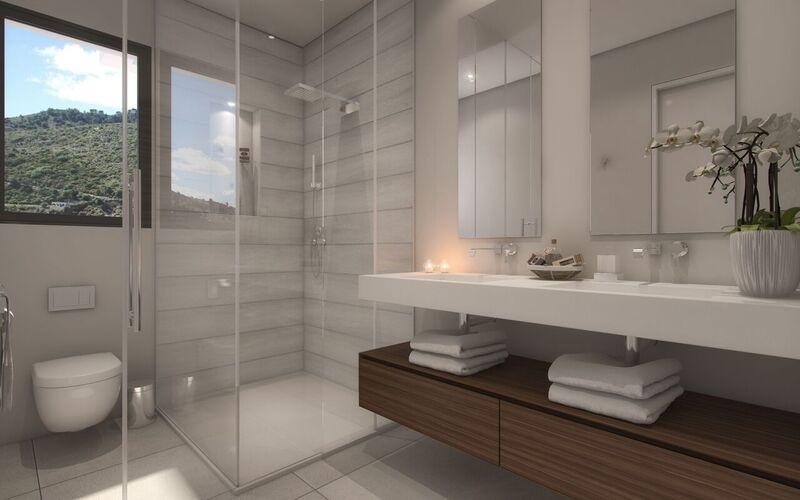 - 2 bed, 2 bath apartments from 799.000 euros (only 2 units left) 3 bed, 2 bath apartments SOLD! 3 bed, 2 bath duplex penthouses from 1.800.000 euros Prices excl. 10% VAT These contemporary apartments, penthouses and villas in 4 phases are nestling in the hills just behind Marbella, in the municipality of Ojén. The area is tranquil and surrounded by green belt and mountains with south facing impressive panoramic views down towards Marbella and the sea. They are only 5 minutes away from La Cañada, the well know commercial Centre in Marbella. The apartments are being built of the highest quality with state of the art modern architectural design and large interior spaces, lots of natural light blending with the natural surroundings and high specification fixtures and fittings. The development will include a health club with spa, gym, fitness studio and indoor pool as well as a business centre with wifi. The complex will house 2 outdoor pools (including one heated), 2 kids pools, strategically placed to enjoy the fantastic views, other services are 24 hour security, concierge service and onsite rental management. This apartment is large with total constructed area of 15,94 m2, of this 110,31 m2 interior space and 44,63 m2 of terrace. The property will comprise a spacious, light open plan living room / dining area with a beautiful kitchen including top end domestic appliances, leading out onto the south facing terrace with spectacular views of the sea and Marbella, 2 bedrooms with fitted wardrobes and 2 bathrooms. The property includes 1 parking space and a storage room. Benefit from special discounts on some units for pre-launch prices, these properties will be snapped up quickly! This luxury development in keeping with nature and surrounded by the mountainside is close to the village of Ojén, for a real Spanish flavour, a short drive to Juanar, a nature reserve with wonderful walks through pine forests and hiking trails leading up to the "Concha" mountain peak with spectacular views overlooking the Mediterranean coast, Marbella, Gibraltar and the coast of Africa. For the best of both worlds, it is only a short drive down to La Cañada, a well known shopping centre behind Marbella with all the shops you can imagine and Marbella town centre with it's amenities, shops, restaurants and bars and the beach. Málaga airport is around 40 minutes by car
