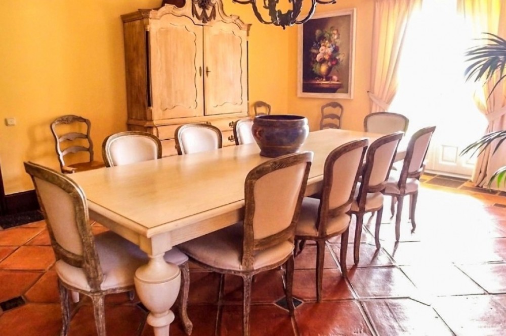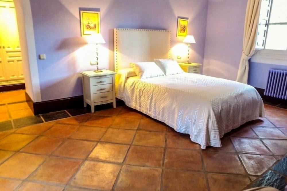 - Spectacular, fully reformed and highly appointed Finca atop the Serrania de Ronda. The expansive land is well defined with areas of crop production as well as a large, multi-use, agricultural building and an animal breeding/ rearing area. The property also benefits from ten hectares of vineyards and two independent guest houses.. The Finca is distributed as follows: Main house: Ground floor: Entrance hall, office, large kitchen with fireplace and wood oven, two living rooms, both with fireplaces, large dining area and one bathroom. There are two interior courtyards. First floor: Four large bedrooms with fitted wardrobes and fireplaces, three full bathrooms, of which two are ensuite. Exterior: Large garden area with pool, porches, barbecue area, covered garage and parking area. There is also a tennis court. 1st Guest House: Entrance hall, living room, fitted kitchen, three bedrooms and one bathroom. Garage and basement. 2nd Guest House: Entrance hall, living room, fitted kitchen and three bedrooms and one bathroom. The land at the Finca consists of ten hectares of vineyards, productive areas for the cultivation of crops and 1,000m2 for the breeding and rearing of livestock. The Finca benefits from numerous wells, delivering mineral water from the Serrania. There are associated water deposits throughout the Finca for the storage and provision of water to livestock/ crops etc. There is a large agricultural building as well as numerous animal pens for the containment of livestock. The main house is in excellent condition with hot water by thermodynamic solar panels, heating by independent radiators, the heating of which is provided by a solid fuel and oil fired boiler. The dwelling also benefits from climalit double glazed windows throughout. Plot: 3.370.000m2 (Crops 970.000m2) Built: 735.80 more Porch: 171m2. Garage: 62m2. Corrales 5.700m2. Agricultural Ship: 1.083m2. IBI: 2.187,67€ per year. Built year: 1980. Distances: Amenities: 8,3km. Ronda center: 13,6km. Malaga Airport: 103km. Gibraltar Airport: 125km.