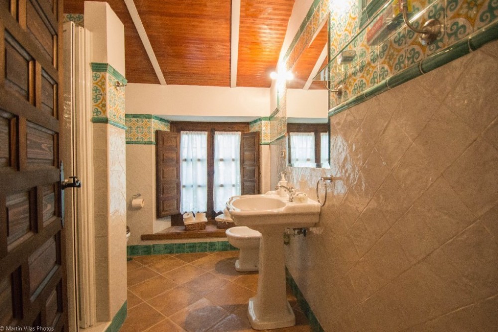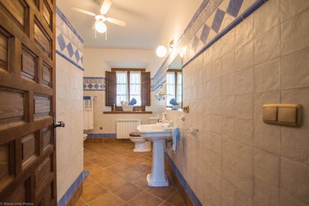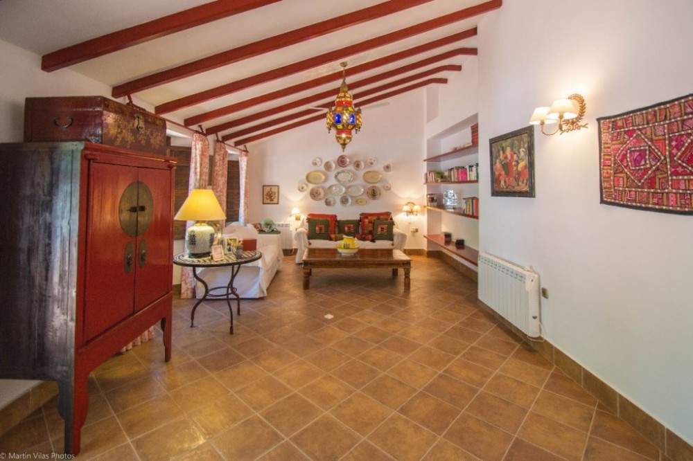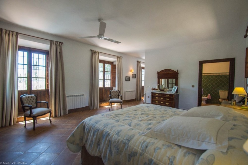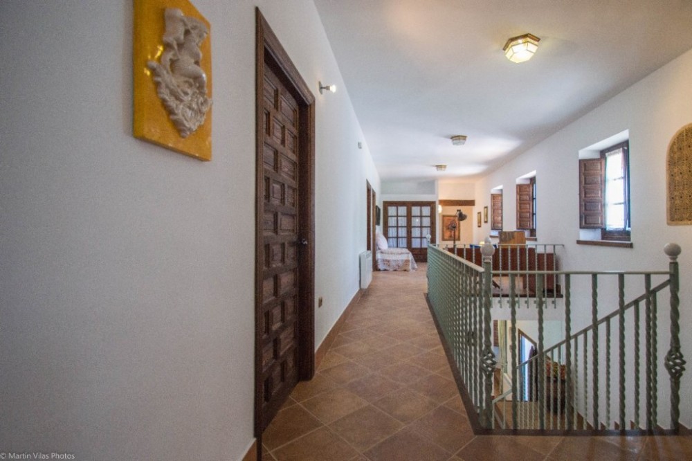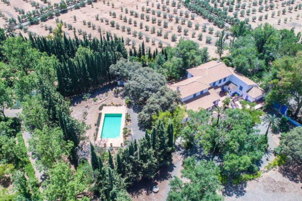 - Fantastically Elegant Finca Between Archidona and Villanueva de Tapia, which is Totally Fenced/ Walled. The Finca and Dwelling Feature Total Privacy, and Yet is Only Four minutes from the Motorway and Equidistant between Malaga and Granada Airports.. The main dwelling has been reformed with style and taste to provide excellent living accommodation for a large family, or for guests. The Finca could also function as a very upmarket Boutique Hotel. The decor and design reflect the international influences of the owners, who have sympathetically included features not normally found in Andalusian Fincas. The main dwelling features delightful tiled terraces with exterior lighting to the front elevation where you will find double doors providing access to the elegant entrance. A central, high ceilinged, hallway distributes to a very large, fully fitted, quality kitchen with dining area and table for ten, which has direct access to the rear terraces and a bodega beneath the stairs. At the rear of the kitchen with external access is the utility/ laundry room. To the right is the main living room which is spacious and light and features the fireplace and TV area, as well as other areas for reading and relaxing. An Islamic archway leads to the reading room with library to the rear and this room also features direct access to the rear terraces. The hallway also distributes to the large fully equipped bathroom for this level and a spacious hat and coat storage under the stairs. An elegant staircase rises to a large landing with a seating area that distributes the bedrooms and two bathrooms. Each of the five bedrooms in the main house are individually decorated and have built in wardrobes and storage. The principal bedroom has a delightful bathroom en suite as well as amazing views from the large feature windows. The remaining four bedrooms are served by the two large bathrooms on this level. Accessible externally, there is a two bedroomed guest cottage on one level, which is currently utilised for live-in staff. In addition to the two bedrooms there is a fitted kitchen, bathroom and ample lounge area. The cottage has its own terrace area, separate from the main house's terraces. Externally, the Finca does not disappoint with large terrace areas, many shaded by mature trees, providing a very Mediterranean feel. There are formal gardens surrounding the house and in addition, a road access with roundabouts and lighting around the Finca. There is a spacious garage with automatic doors attached to the house. The saltwater pool, sits in very natural surroundings and blends delightfully with the landscape and designed gardens. Overall, the gardens feel very considered and well laid out. There is also a genuine farm element to the Finca with facilities for up to twenty five horses. Additionally there is a very large farm building which could be utilised for any type of livestock, with several fenced and walled areas externally for the separation of horses or other animals. There is also a horse lunging area. On the plot there is a water well (with ample water for irrigation) and drinking water for the home. The Finca sits well in the landscape and there are many wild animals inhabiting the area, such as rabbits. Overall the Finca is very well placed with all amenities available within six kilometres and both Granada and Malaga airports within seventy kilometres. Plot 25.130m2. Total built size 3.650m2 approximately. Fully renovated in 1995. Distances: Archidona 10km. Malaga airport 67km. Granada airport 59km.