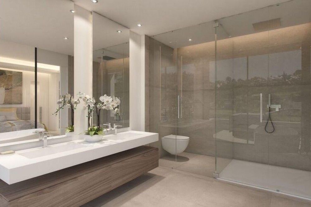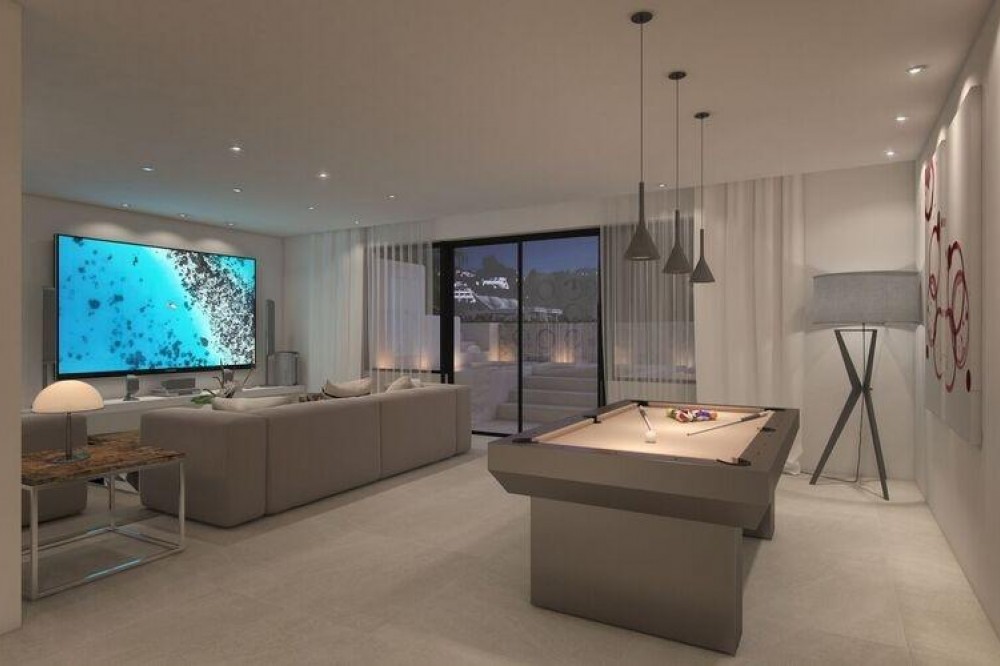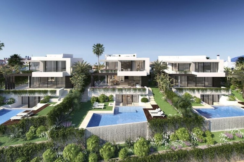 - Located in an enviable position in the heart of the New Golden Mile. This area of the Coast is well known for its numerous golf courses including Los Flamingos Golf Club, Atalaya Golf & Country Club, El Paraíso Golf, Marbella Club Golf Resort and Guadalmina Golf, among others. Easily accessible and only a short distance from Marbella and Puerto Banús, only 45 minutes drive from Malaga International Airport and close to San Pedro and Estepona this is the ideal choice for a second residence on the Costa del Sol. We have maximised the use of large full length windows to take full advantage of the light and thus fluidly connecting the indoor and outdoor living spaces as well as the open plan layout of the villa designs. The use of natural materials and lightly coloured interiors -walls, doors, ceiling and other architectural features- including the open plan layout maximise the feeling of being at one with nature create warm spaces and a welcoming ambience that is both functional and comfortable. The villas offer unlimited possibilities as the basements also allow homeowners the option to adapt this area to suit their lifestyle. The solarium on the top of the villas will enjoy 360º panoramic views with a backdrop of the Marbella mountain range. This unique living space can also be personalized by each homeowner to suit their individual requirements.