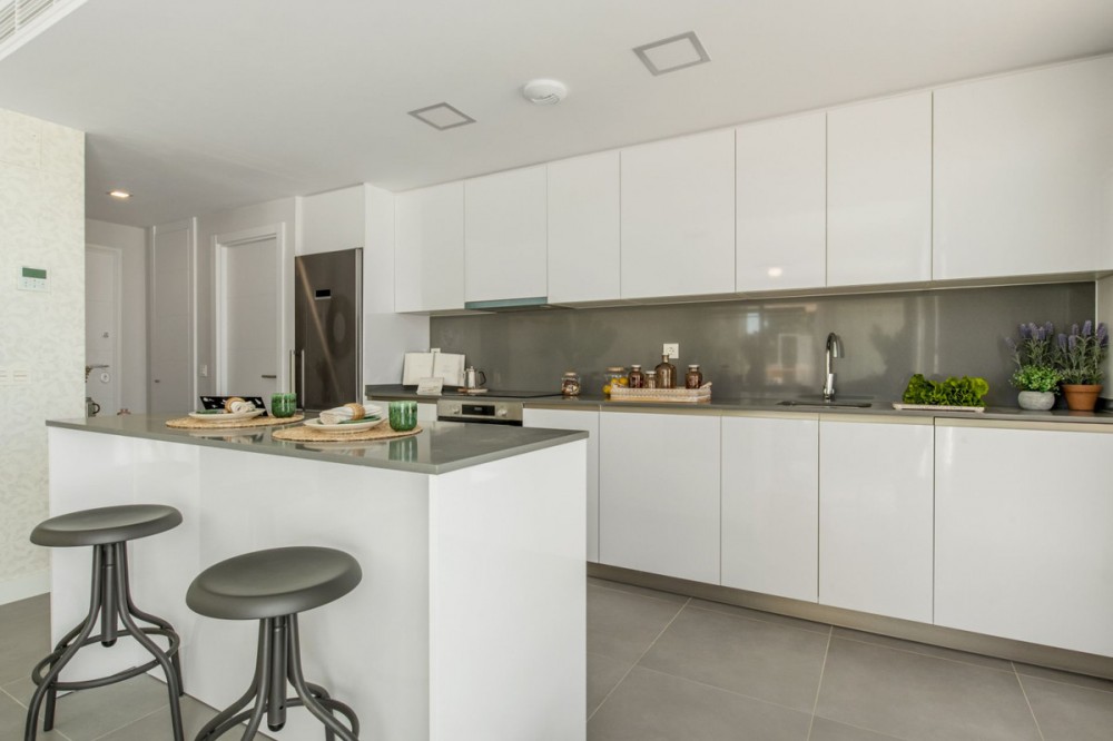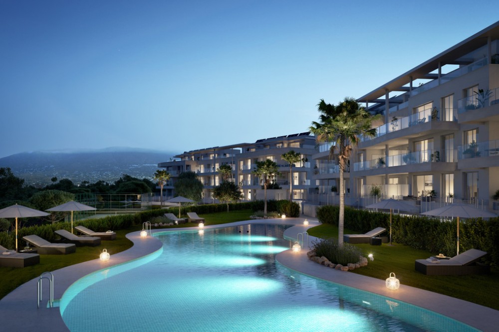 - New Development: Prices from €697,700 to €779,900. [Bedrooms: 3 - 4] [Bathrooms: 2 - 3] [Built size: 100m2 - 120m2]. This development is a new residential complex in Mijas Costa, one of the best sought after areas of the Costa del Sol. This exclusive complex of 166 apartments of 2 and 3 bedrooms and Penthouses of 3 and 4 bedrooms, as well as fantastic common areas including a children's playground area. Ground floor apartments have terraces and private gardens. All kitchens have cooking islands and all bedrooms have access to large terraces. Open green areas, indoor heated pool and outdoor pools, Wellness Center, gym and running track. Many facilities included, not to mention all the amenities at walking distance. Definitely the perfect place on the Coast. Perfect terraces to enjoy Its architecture and contemporary design allow the terraces to enjoy the most of the Mediterranean light and the best views, mixing with the environment and respecting the nature that surrounds it. The Penthouse terraces are spacious and with breathtaking views. The ground floors have also a private garden. Private complex with large and fantastic common areas, surrounded by greenery and gardens, designed to enjoy the maximum leisure time with family and friends. Here we can find: several outdoor swimming pools, Spa area with indoor swimming pool, Turkish bath and sauna, gym, Social Club, paddle tennis court, putting green, urban orchards… The properties offer wide spaces, open kitchen with island, living room and bedrooms with direct access to the terrace. The units spaces have been optimized to be cozy, comfortable and versatile using materials chosen according to the highest quality standards. All 2 and 3 bedroom apartments have 1 underground parking space and 1 storage room included in the price, all 3 and 4 bedroom Penthouses have 2 underground parking spaces and 1 storage room included in the price. The Elevators in the development connect the different floors and are as follows: - Block 4 has 3 elevators servicing 30 apartments - Block 5 has 3 elevators servicing 26 apartments - Block 6 has 3 elevators servicing 30 apartments
