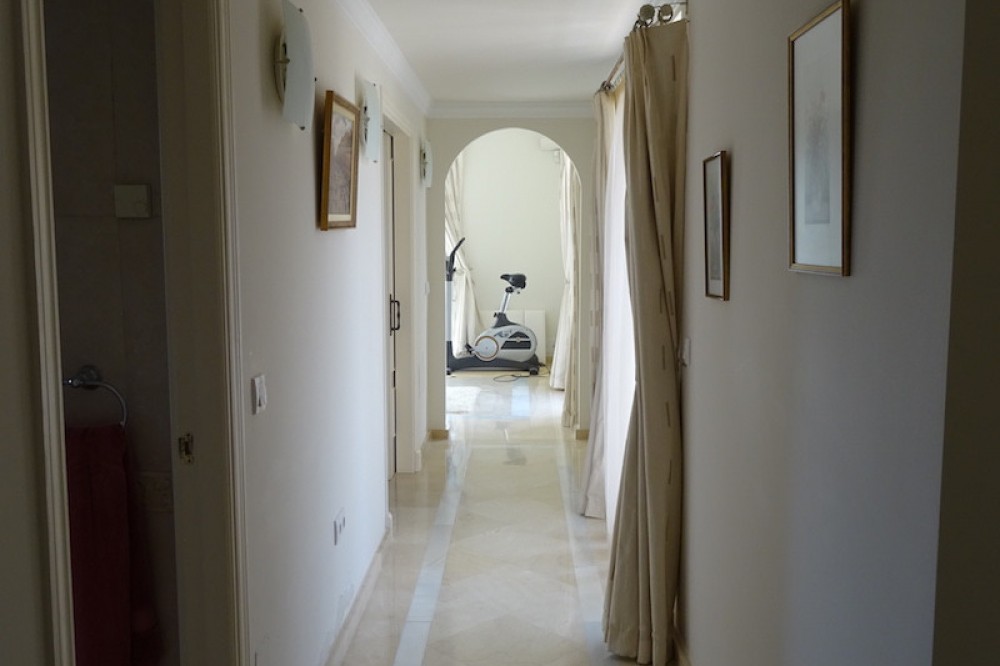 - Attractive and charming 4-bedroom Spanish-style villa, designed and built for the current owner/occupier to Northern European standards Plot size 3,090 m2. House built 385m2 Building completed in October 2002 Property details: 4 bedrooms, large living room. 4 bathrooms. 1 Dressing room attached to the master bedroom. Large storage room of approximately 12 m2. Terrace of approximately 30 m2, with access from the living room and hall and is closed with glass curtains. Attached double garage with a 30m2 long drive to the front door. Additional parking space next to the garage and NO street parking is necessary. Pool of 12 x 5 m and depth 120 x 210 cm. The villa has 2 gas boilers for underfloor heating, hot water and the kitchen is both gas and electric. All bathrooms have independent underfloor heating, electric heating. All exterior walls and roof of the villa are insulated and double glazed. All the main parts of the villa and the large, well-kept garden are oriented to the south and the pool is exposed to the sun all day. The patio of approximately 140 m2 is surrounded by 50% by the villa, 25% by plants/trees and 25% by the pool. The current quarterly community charge is €479.74 Annual IBI, €2,259.89 Detached Villa, Sotogrande Alto, Costa del Sol. 4 Bedrooms, 4 Bathrooms, Built 255 m², Terrace 130 m², Garden/Plot 3090 m². Setting : Commercial Area, Close To Port, Close To Sea, Close To Town, Close To Schools, Close To Forest, Urbanisation. Orientation : South. Condition : Excellent. Pool : Private. Climate Control : Fireplace. Views : Mountain, Country, Panoramic, Pool. Features : Covered Terrace, Fitted Wardrobes, Private Terrace, Gym, Storage Room, Utility Room, Barbeque, Double Glazing. Kitchen : Fully Fitted. Security : Alarm System. Parking : Garage. Utilities : Electricity, Drinkable Water. Category : Golf, Luxury.